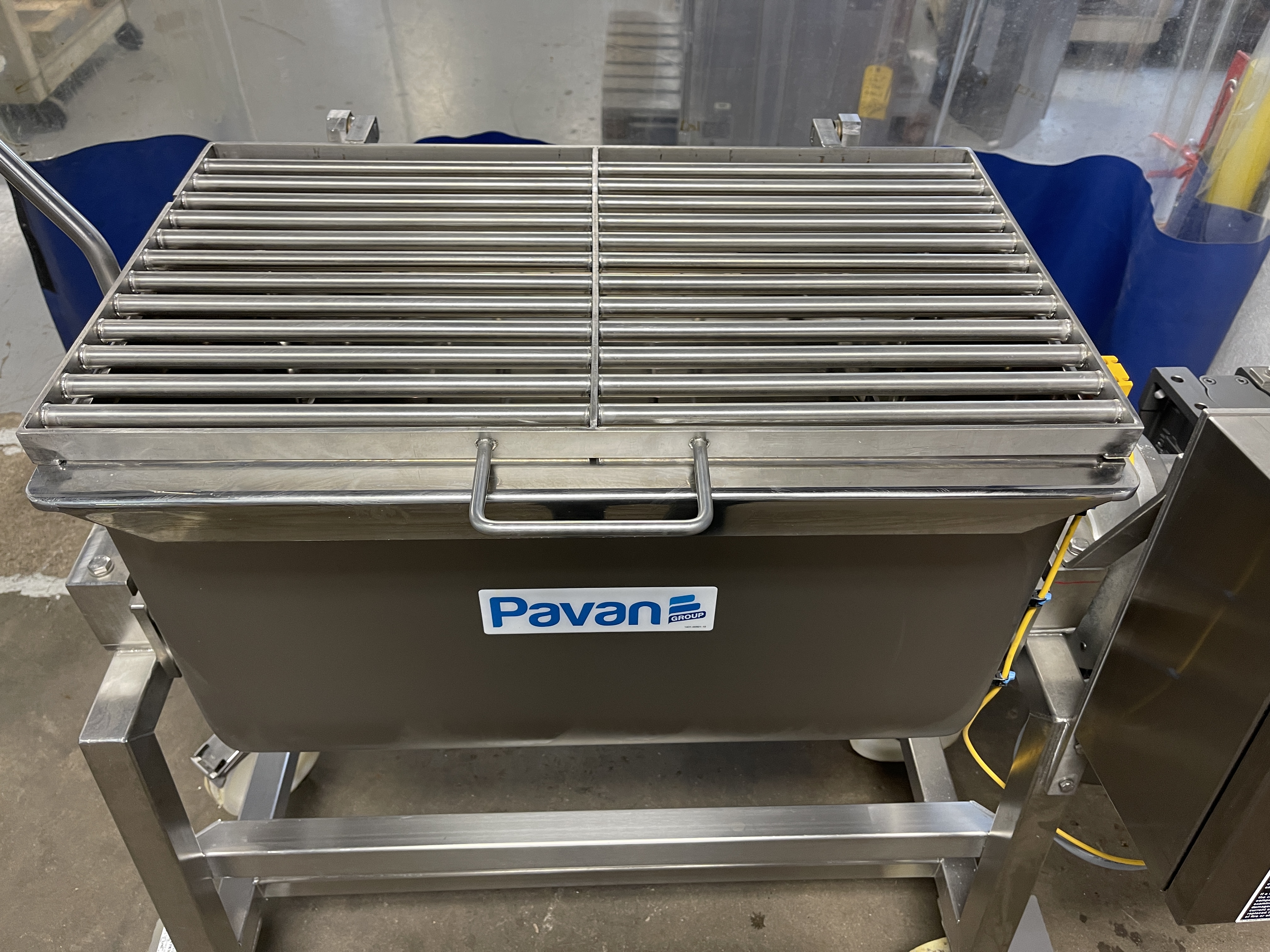 Pavan Impastatrice N. 700 Paddle Mixer. 30″ x 17″ x 21″ Hopper, Single shaft paddle mix arm, hand tilt discharge, 49″ infeed, 26″ discharge height, mounted on 9″ locking casters, 2.2kw motor, 440V/3PH/60HZ.