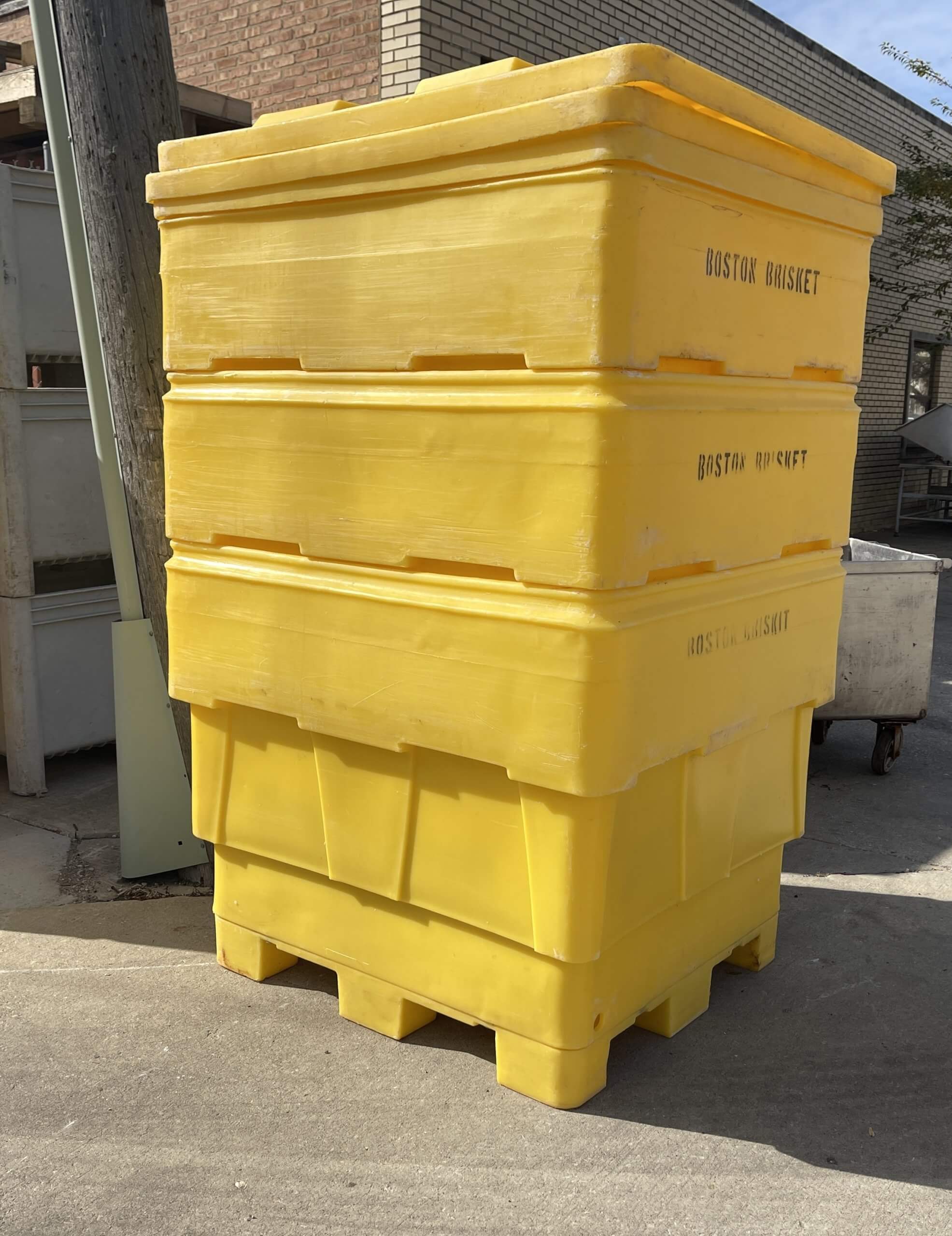 Poly Vats Curing Vats. (6) Poly Curing Vats, 41″ x 44″x 32″ , 5″ legs, , 4 way entry, with covers.