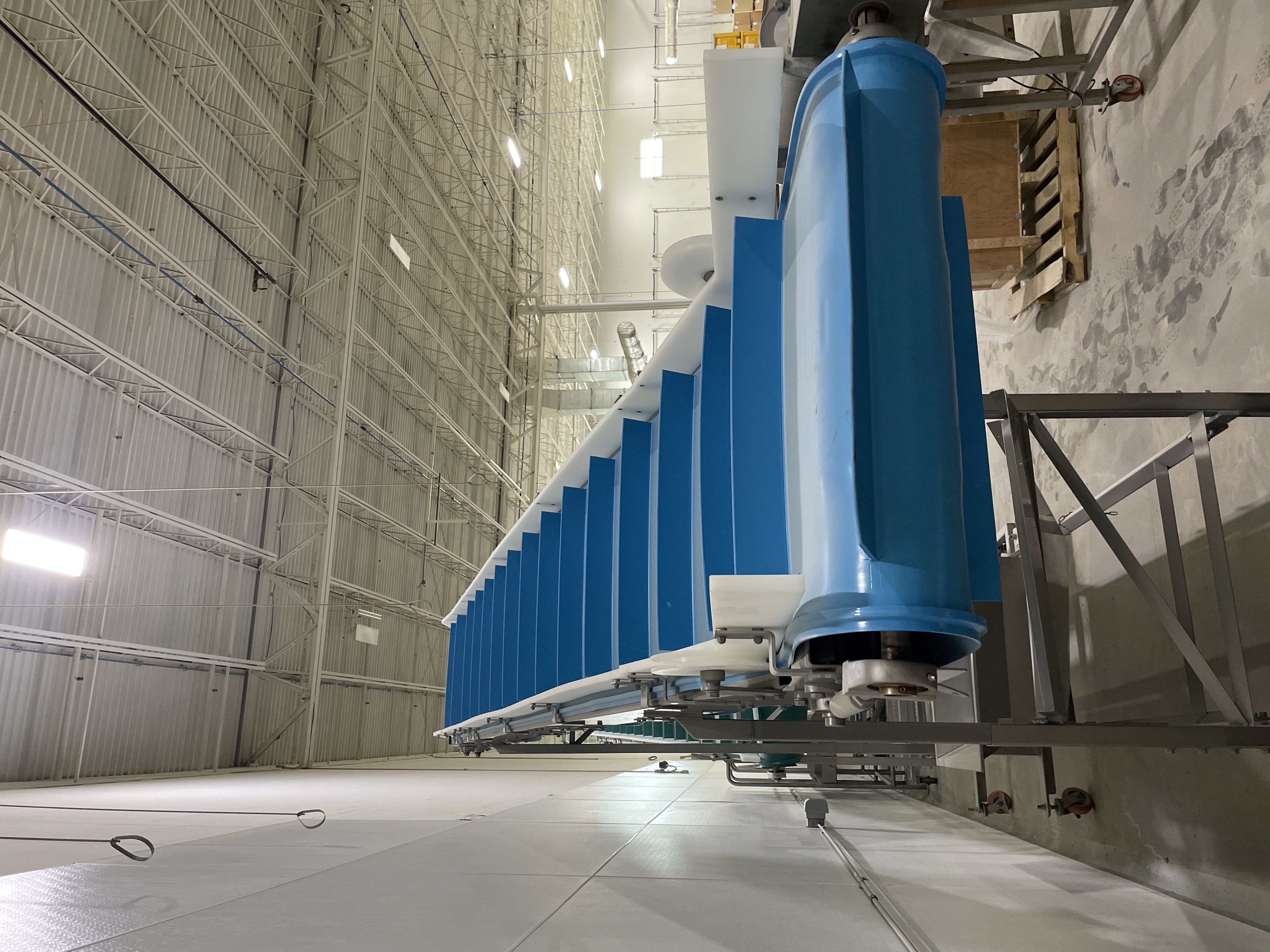 LYCO Bluebelt Incline Conveyor. 14.5″ wide cleated conveyor belt, cleats space...