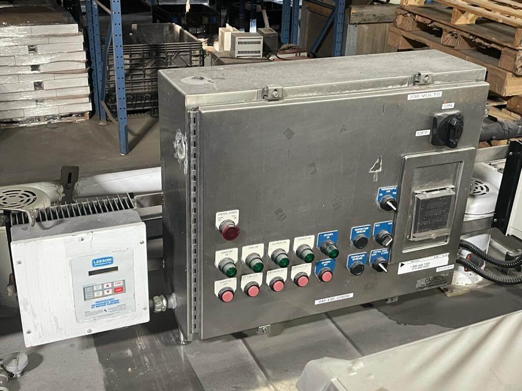 Praxair Freeze Tunnel. Nitrogen Freeze Tunnel, 25′ overall length, 40″ wide stainless steel conveyor belt, (3) high speed velocity fans, 230V/3PH/60HZ.