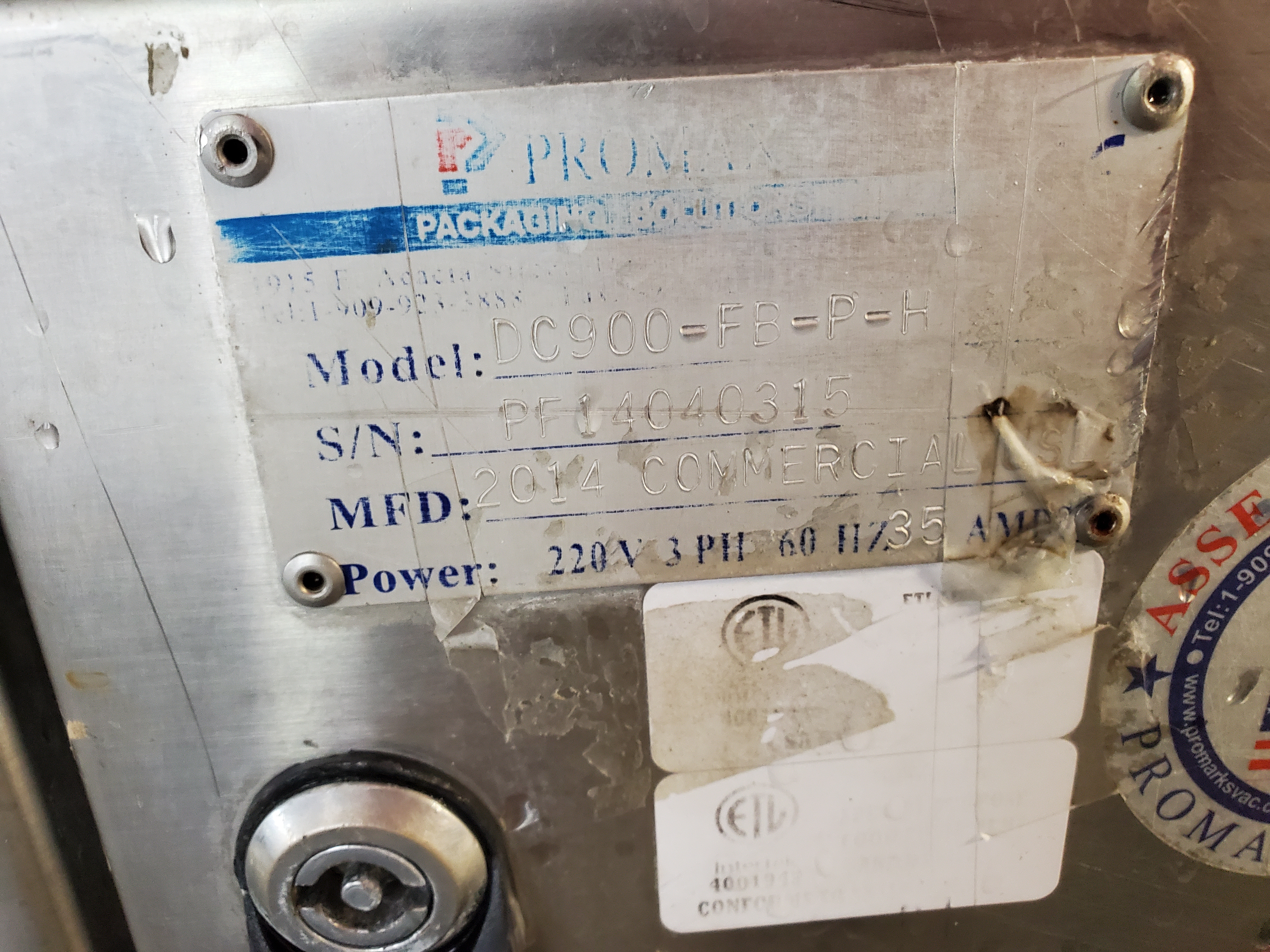 PROMAX DC-900-FB-P-H Chamber Machine. All stainless steel construction, PLC operated...