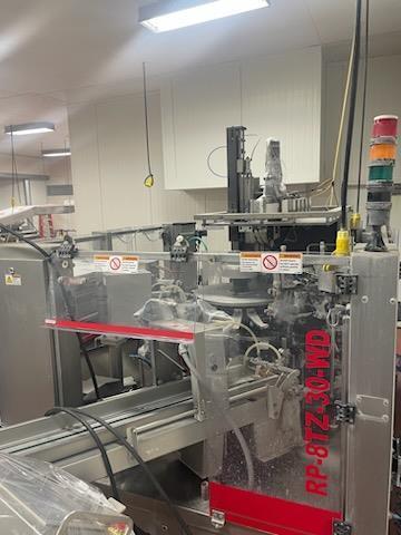 PSG LEE RP-8TZ(30)-WD Washdown Premade Pouch Filler/Sealer. Depending on the pouch and product, the machine can operate at 30 to 50 pouches per minute. The range of pouch sizes is as follows: Width: 6.3″ – 12″ (160mm – 304mm), Length: up to 13.8″ (350mm). Weight Limit: up to 10 kg or 20 lbs. intended for pouches with a zipper seal, stand-up bottom, and gusset. Last used on frozen meat patties in a USDA facility. The machine consists of an eight-station turret for the following functions: #1 pouch pick-up, #2 Hot Stamp coding, #3 zipper opening, #4 pouch bottom opening with pouch present detection, #5 open pouch transfer to fill station with product settler Sixth gas flush, seventh heat seal, eighth seal, quench, and release. Any product filler, including the Luciano product elevator, can be added to the fill station according to its specific needs. 480V/3ph/60Hz.