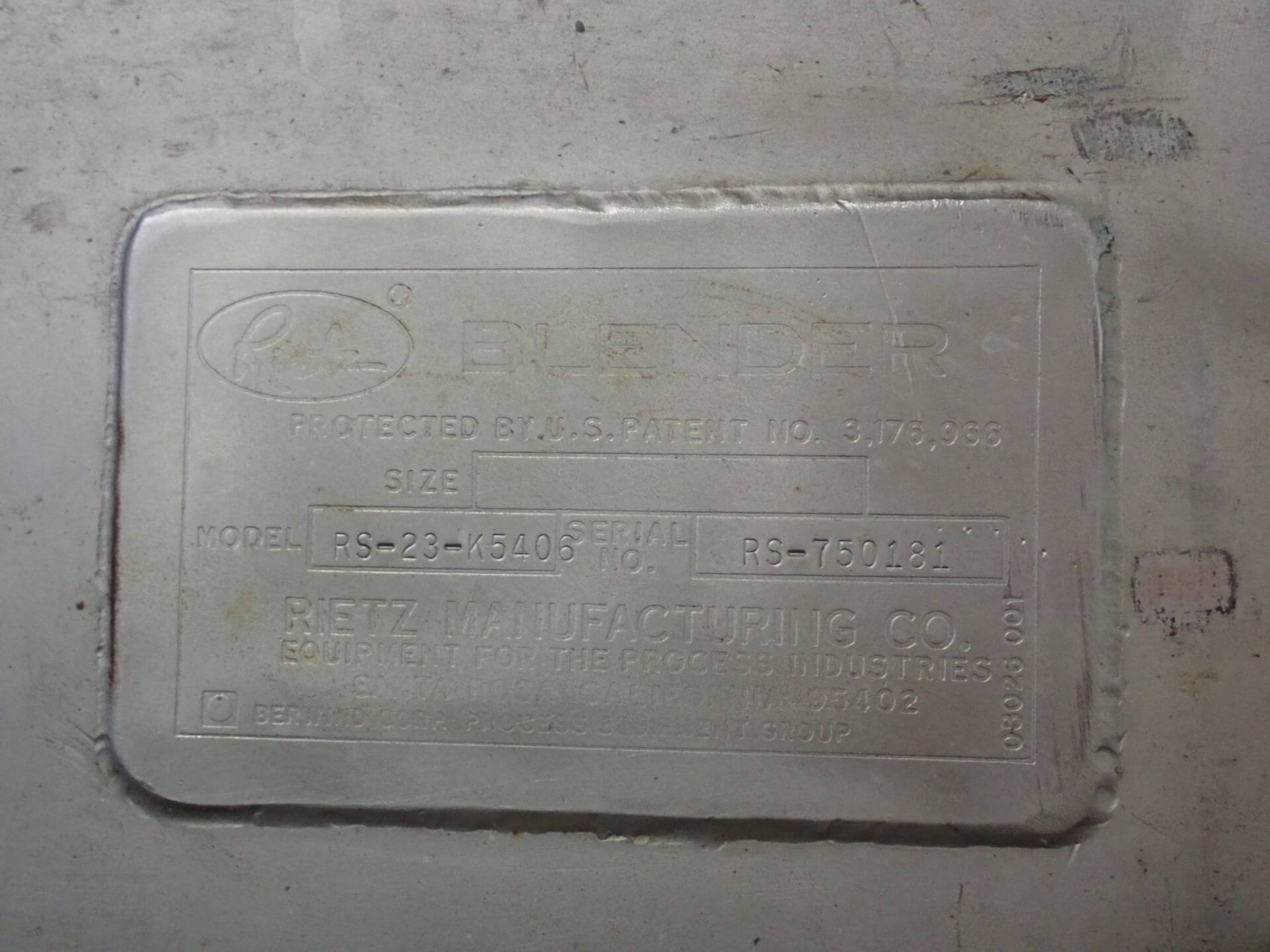 Rietz RS-33-K5412 Ribbon Blender. 10,000 lb capacity, stainless steel construction, ...