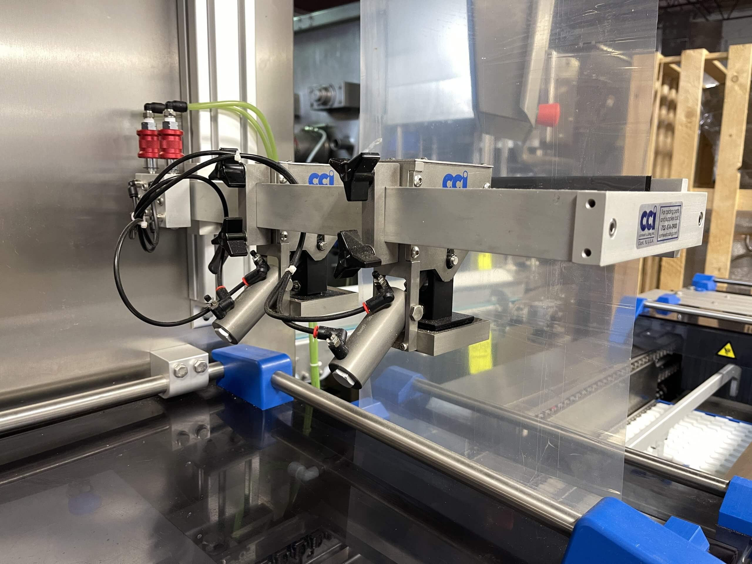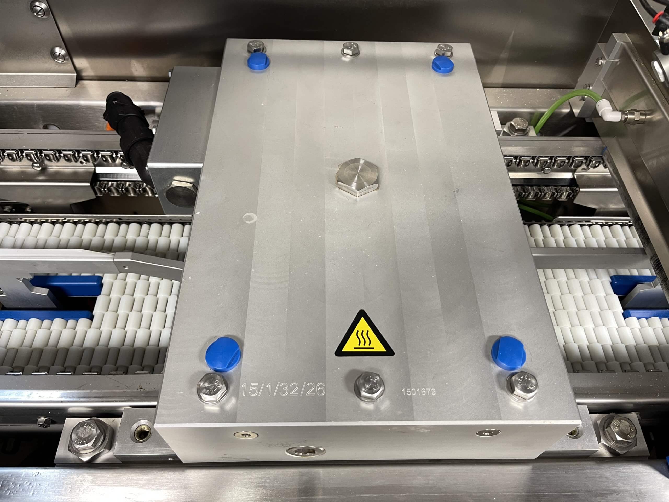 Repack RE/15 Rollstock Packaging Machine, 320mm width x 260mm advance. Includes 3 inserts: 10″ x 8″ one up, 10″ x 6.25″ one up, 4-5/8″ x 4-5/8″ four up. CCI Code Dater with Photo registration, all stainless steel construction, 220V/3PH/60HZ 51 AMPS.
