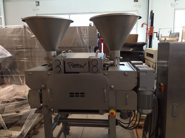 RHEON 1E1A2 Pattymaker/Former. Twin row high speed encrusting of filled products, up...