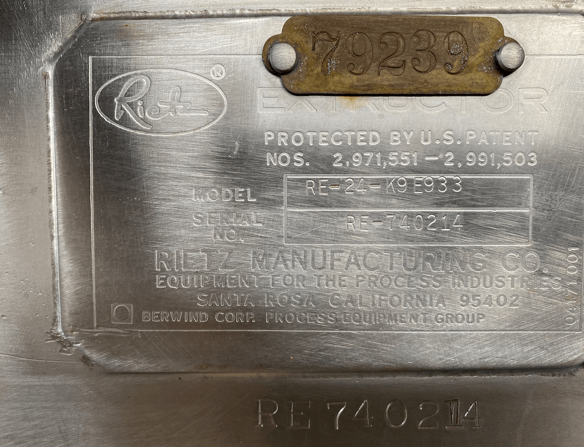 Rietz RE-12 Extractor. built-in pneumatic operated loading device, bottom mount 25hp...
