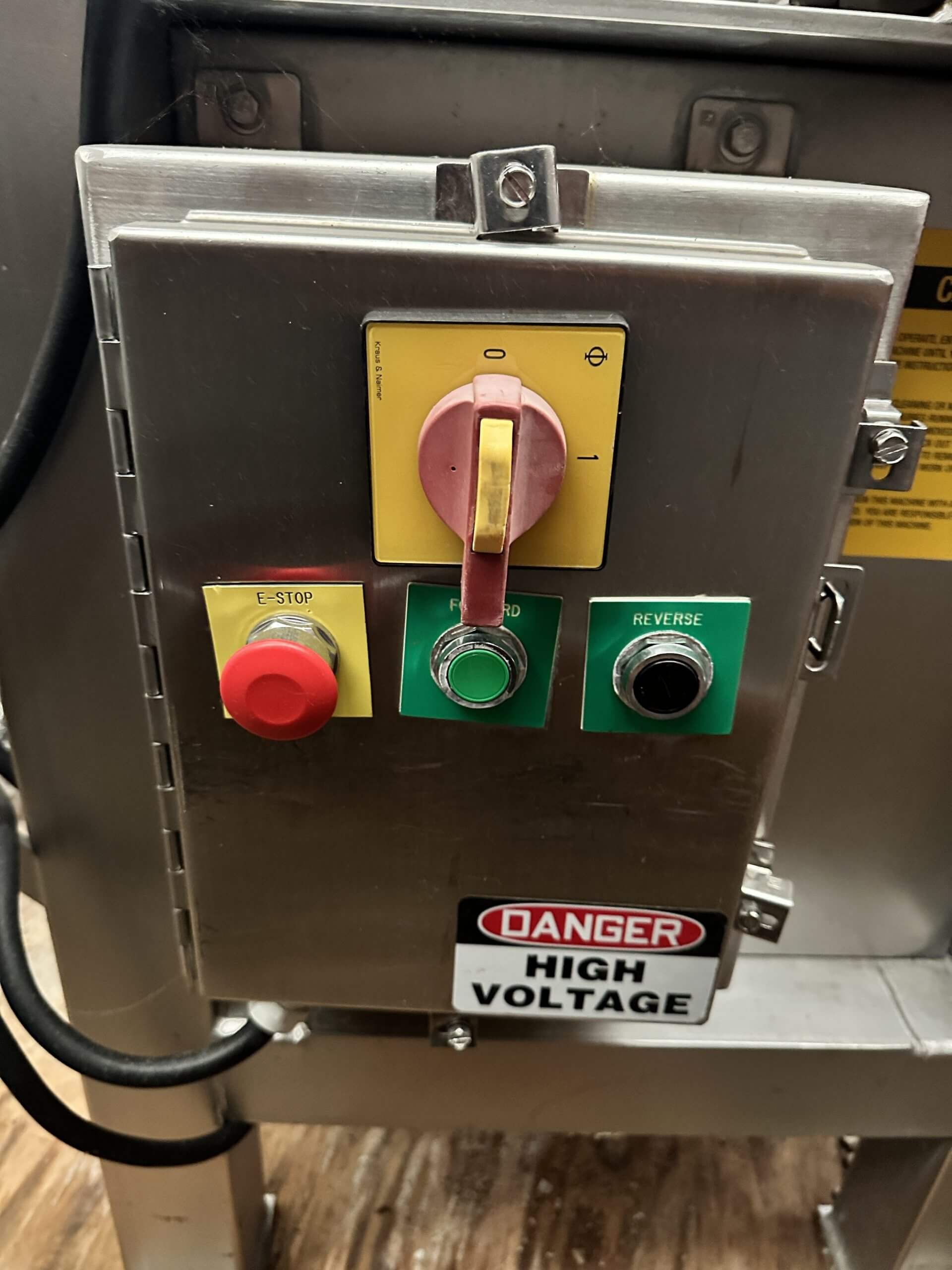 ROBERT REISER ROTOCLAW || FROZEN MEAT FLAKER. All stainless steel construction. Handles frozen blocks up to 9.5″ x 21″, capacity up to 10,000 Lbs./hour. 7.5 hp motor, 220/440V3PH/60HZ. Built-in loader, requires 80 PSI compressed air.