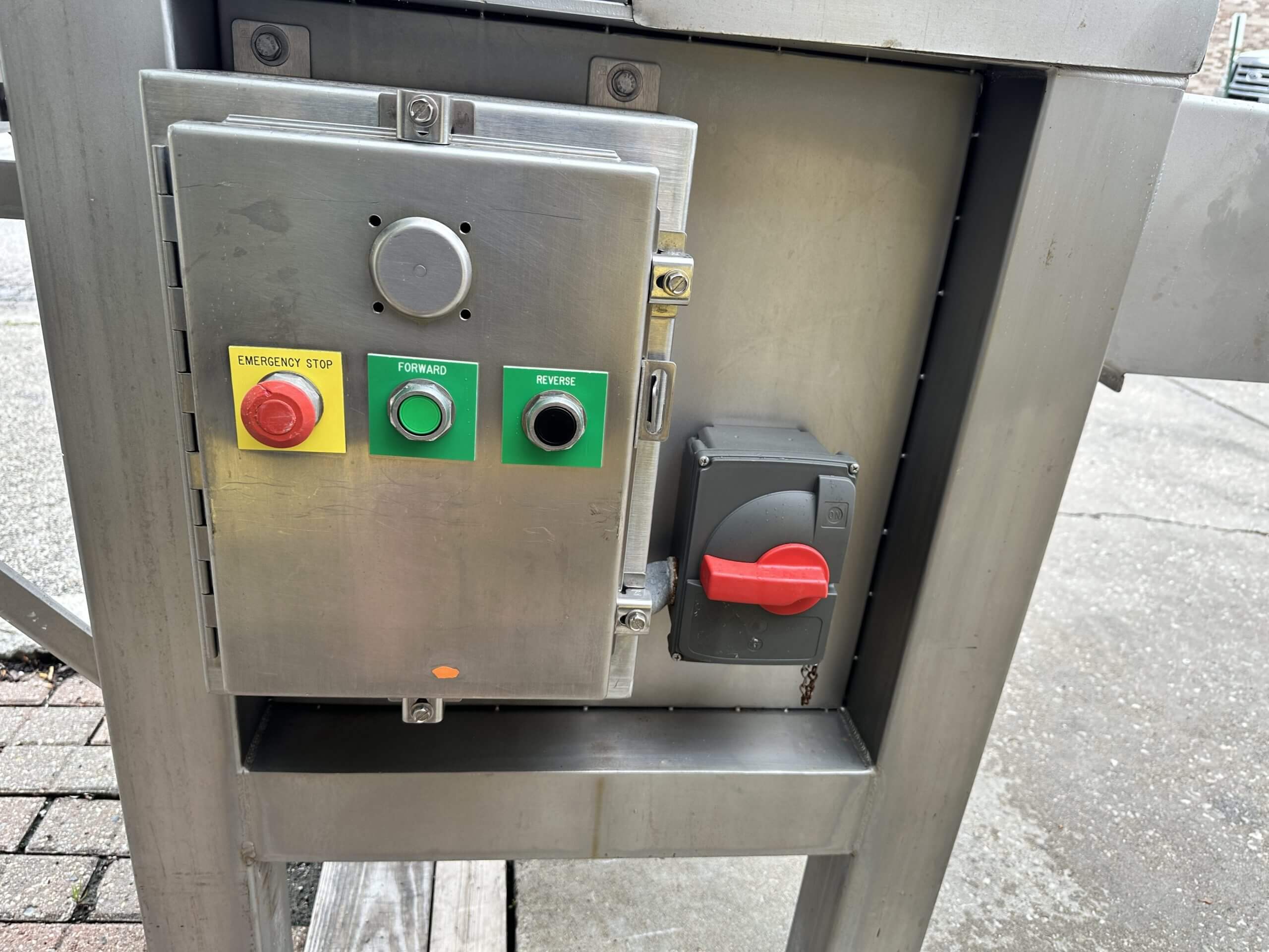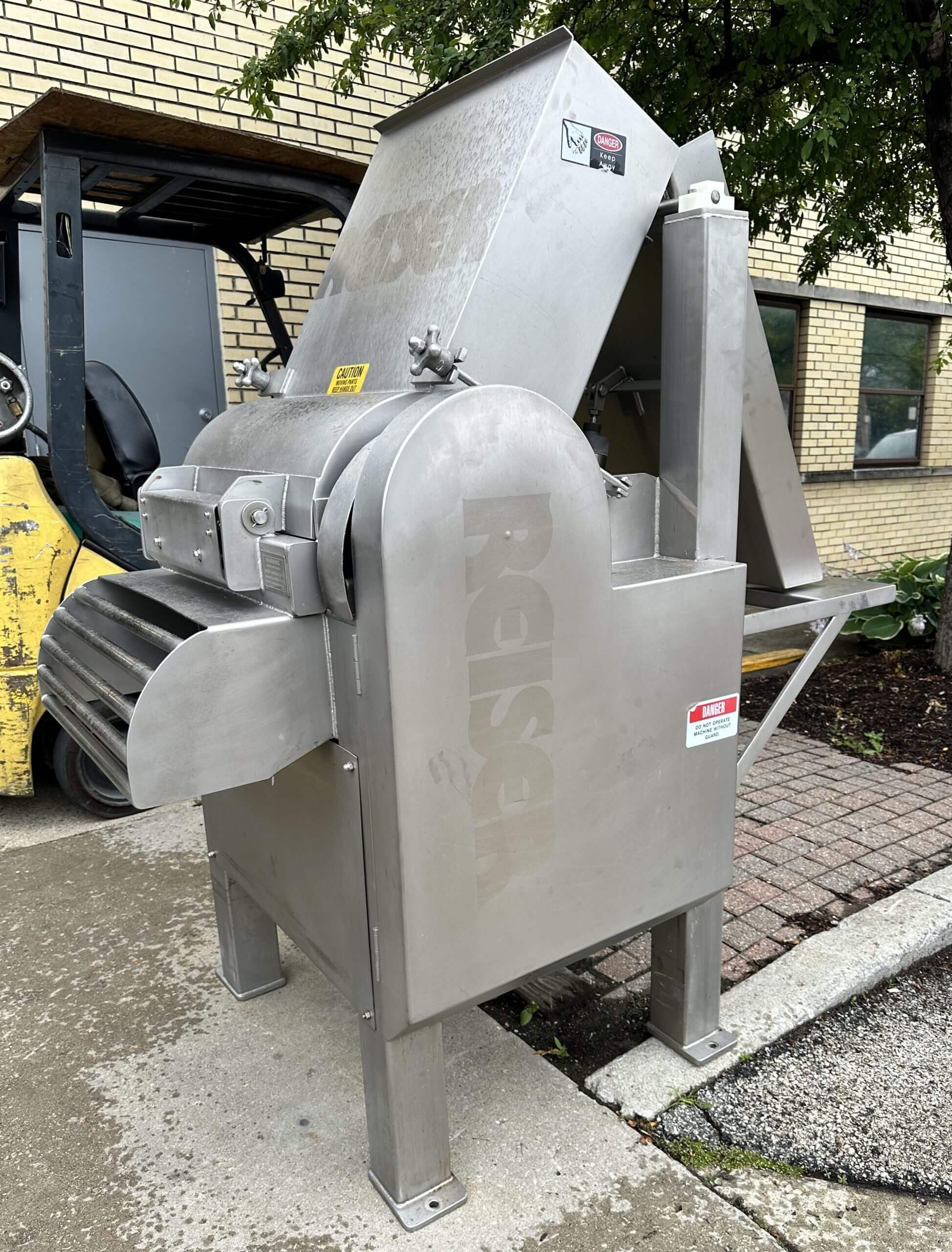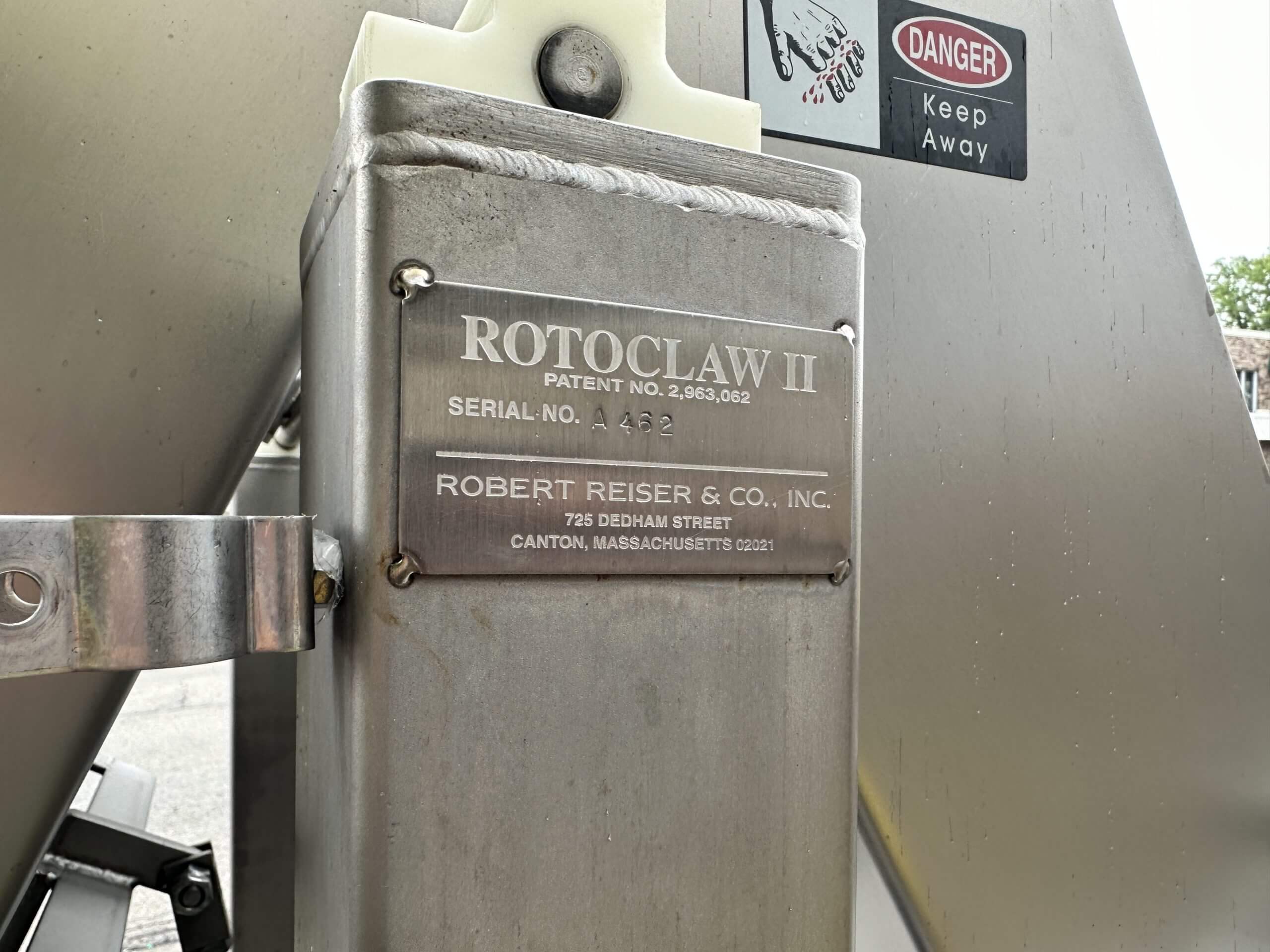 ROBERT REISER ROTOCLAW II FROZEN MEAT FLAKER. All stainless steel construction. Handles frozen blocks up to 9.5″ x 21″, capacity up to 10,000 Lbs./hour. 7.5 hp motor, 220/440V3PH/60HZ. Built-in loader, requires 80 PSI compressed air.
