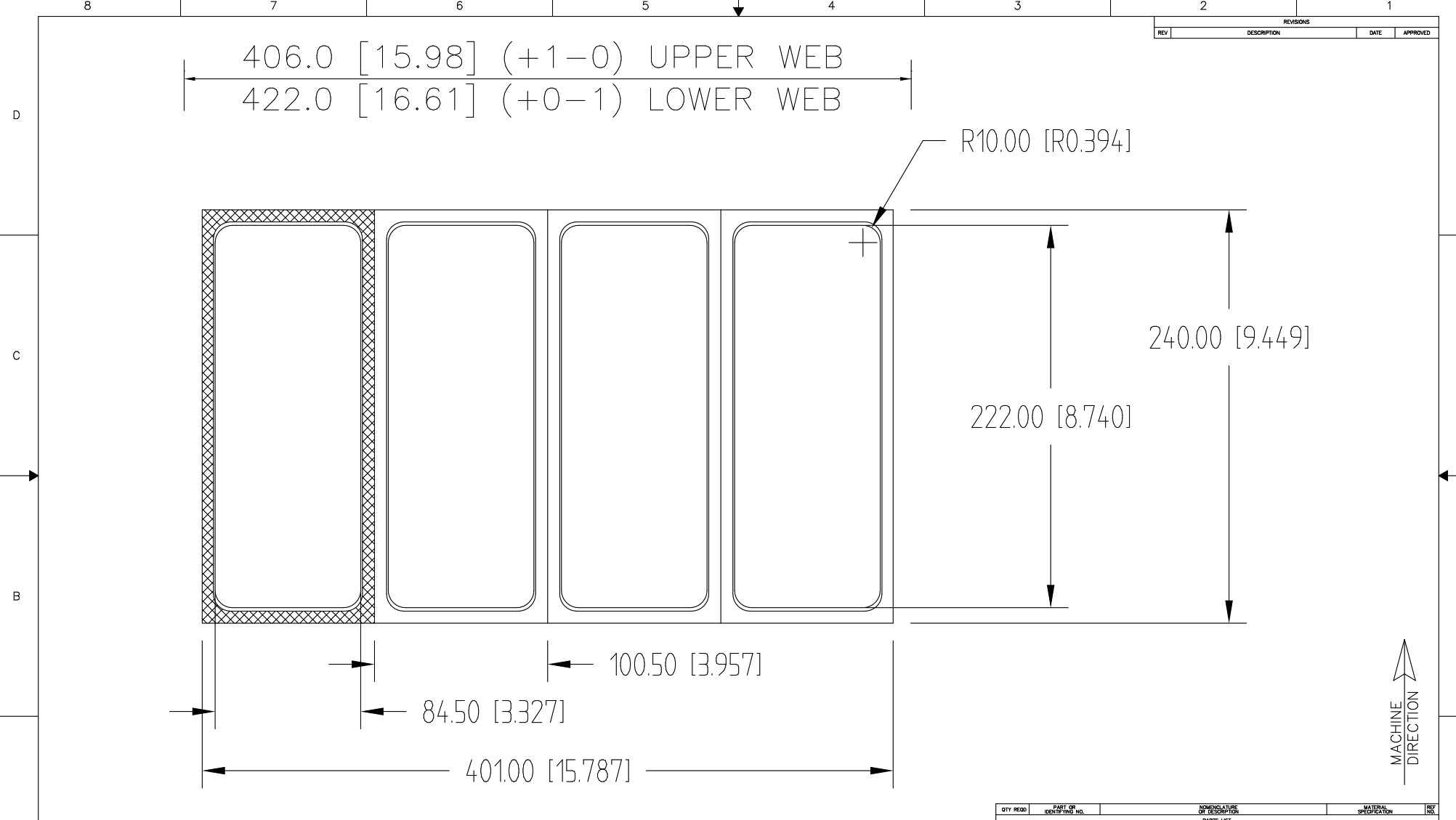 Multivac R 240 Rollstock Parts Machine. Die Box ID 15″ wide x 19-3/4″ de...