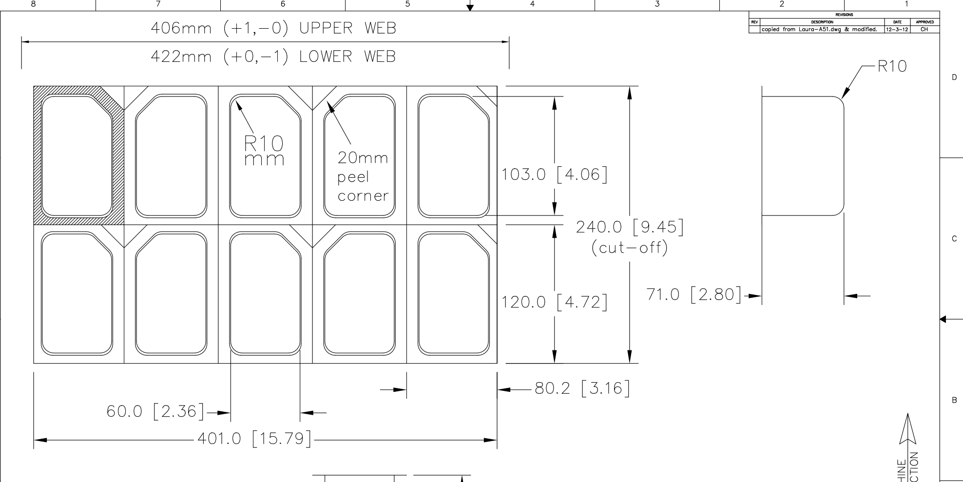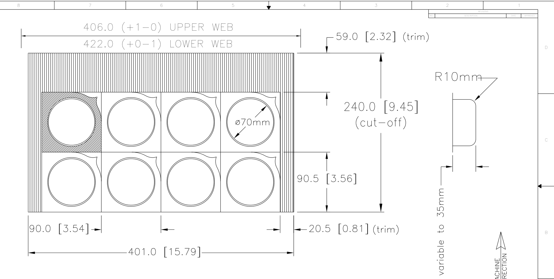MULTIVAC R535 Vacuum Packaging Roll Stock. 422mm web width X 1020mm advance. Tooling...