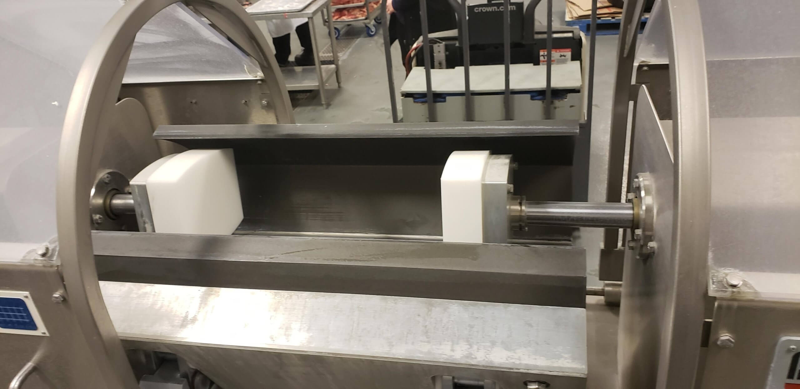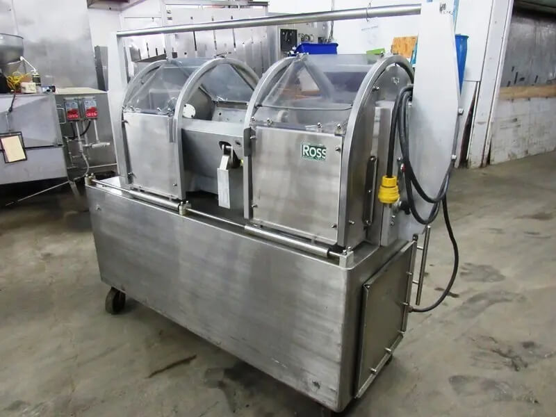 ROSS 914 Meat Press. With unique “double-ram” technology for creating uniformly shaped products to maximize slice yields, 3-10 second dwell time with up to 1,500 PSI of pressure, mold capacity up to 22″ X 6.5″ X 9″, suitable for products between 25-29 degrees Fahrenheit, up to 6 cycles per minute, 208V/3PH/60HZ.