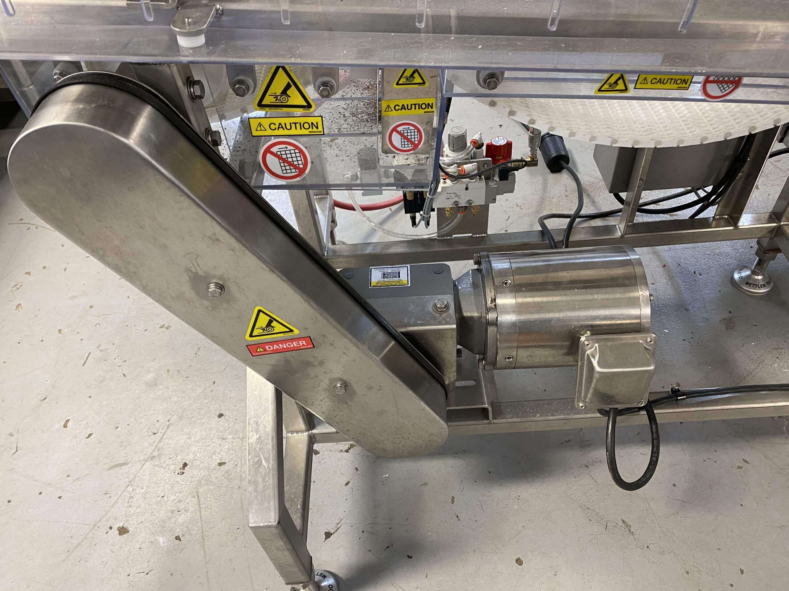 Safeline Metal Detector. 5-3/4″ x 6″ usable aperture. 6″ wide X 105″ long plastic conveyor belt. 18″ Pneumatic retractable shuttle for product reject, 1/2 hp stainless steel wash down motor and gear box, 110V/1PH/60Hz.