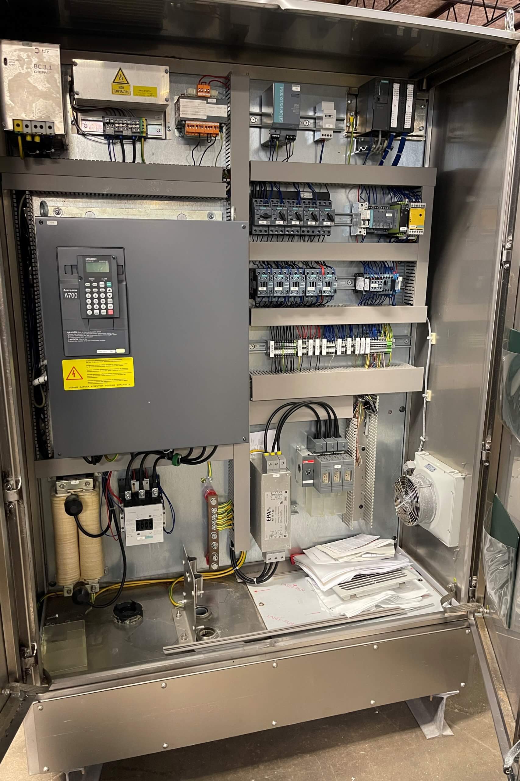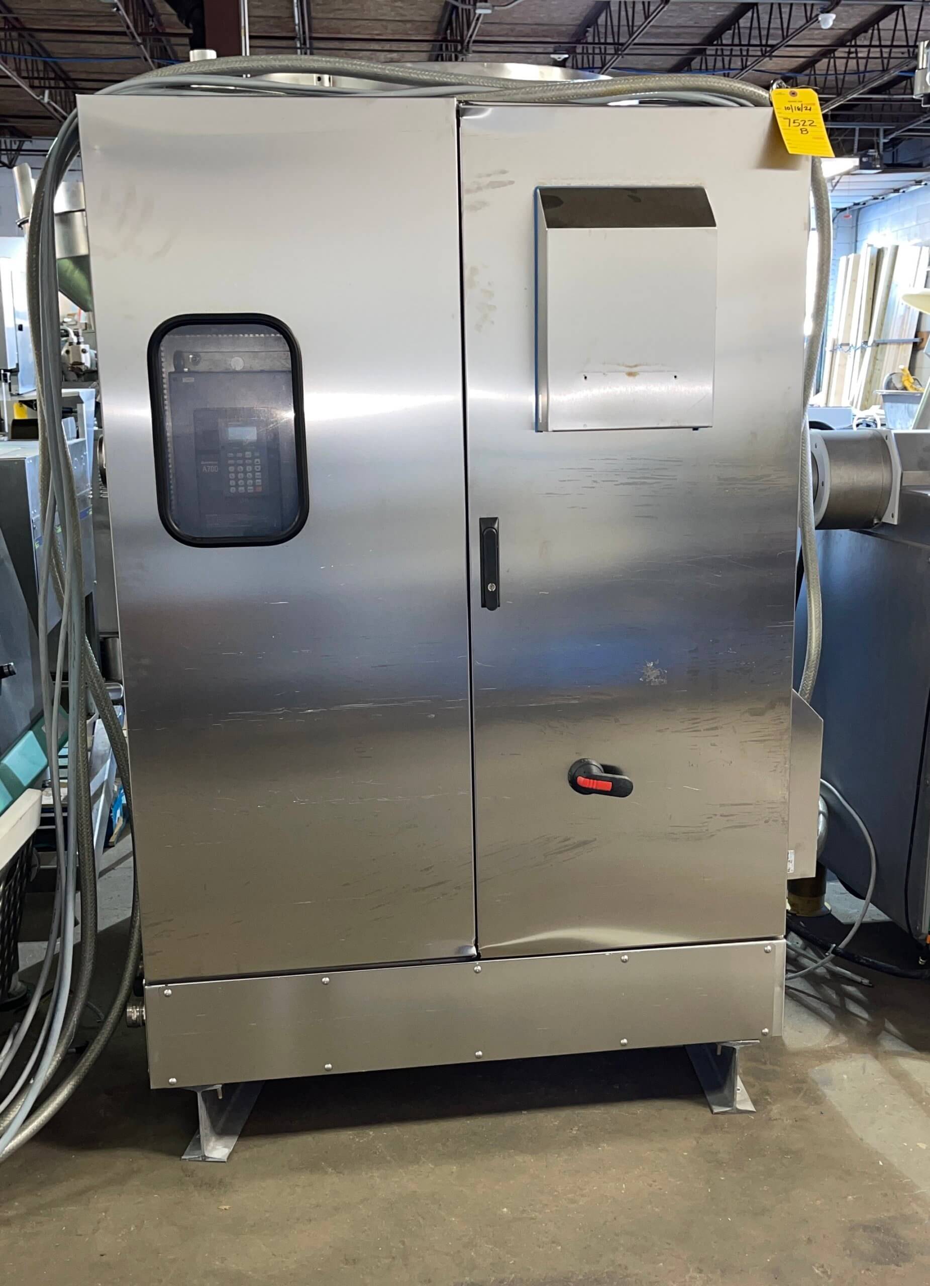SEYDELMANN K120 AC8 Bowl Cutter. Ultra V High-Efficiency Cutter. 120-liter bowl capacity. Seydelmann Command 1000K touch screen controls with floor mount stainless steel control enclosure. Mitsubishi A 700 PLC to operate variable forward and reverse speeds. Plexiglass noise cover, Left-hand unloader, full set of knives and tools. 460V/3PH/60z, 81 Kva, 110 kW.