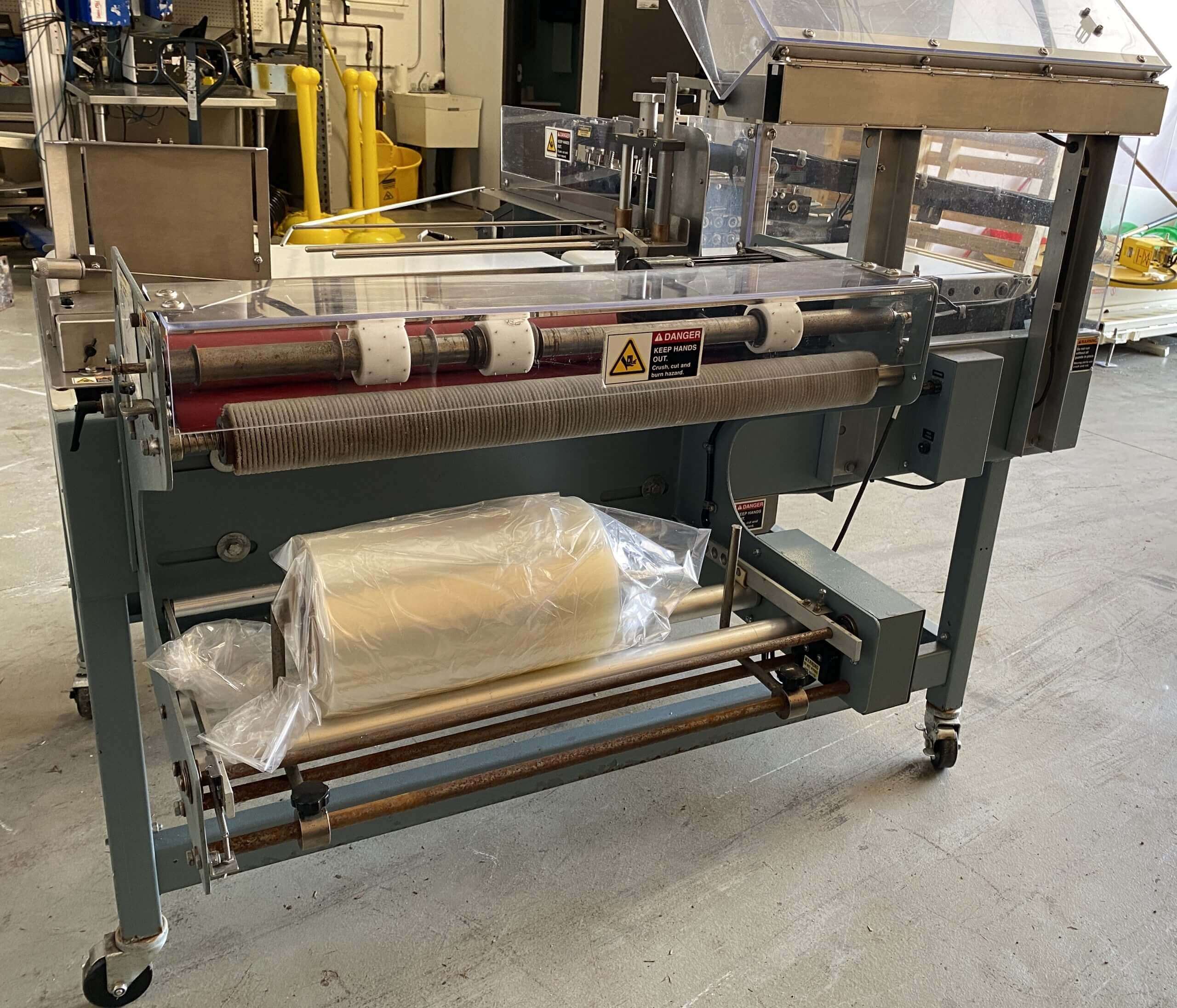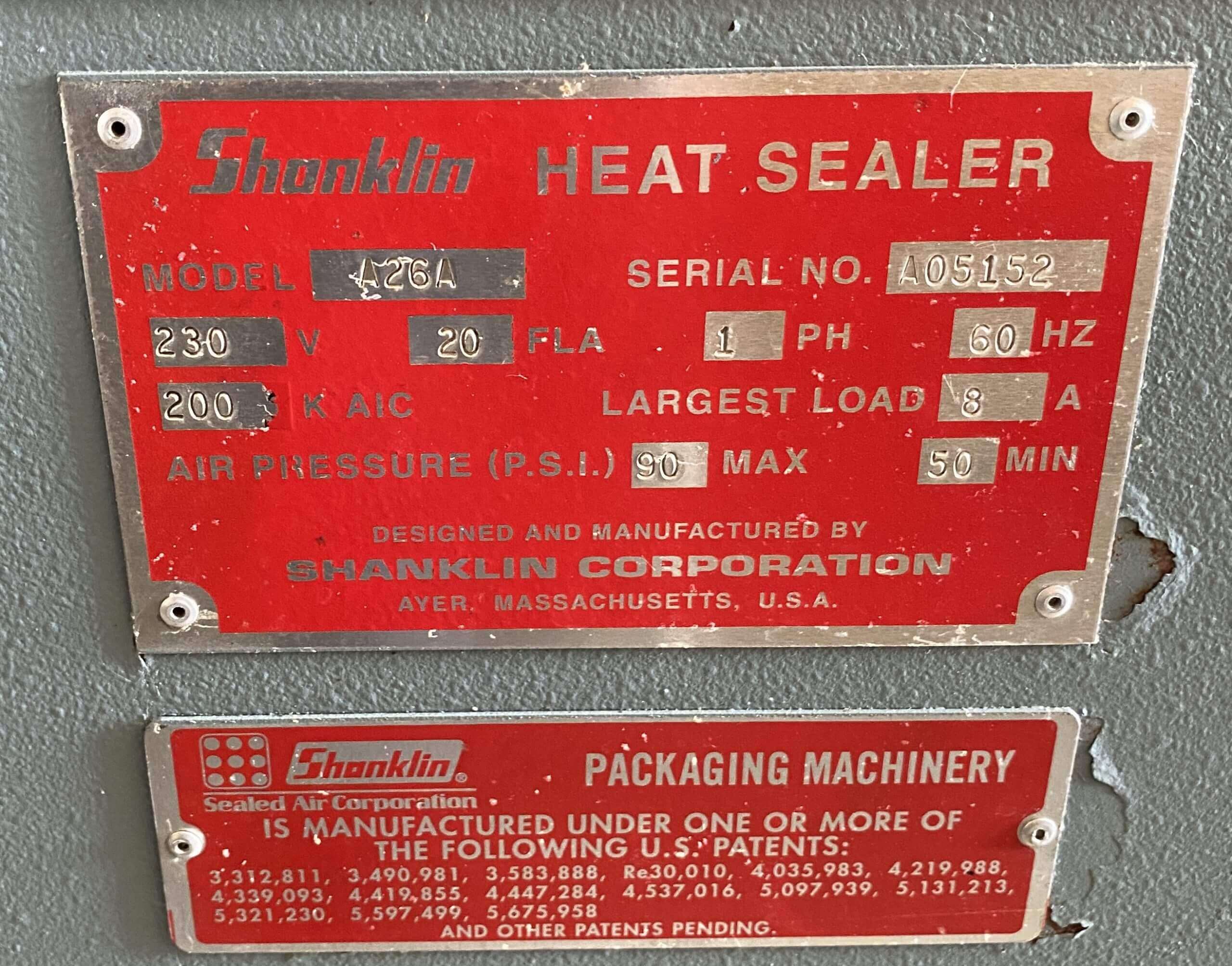 Shanklin Fully Automatic L Bar sealer. Up to 35 packages per minute. 15″ x 21″ seal size. 24″ maximum centerfold film width. Adjustable height sealing jaws. 5.5″ maximum product height x 20″ long. 0.5 CFM air @60 PSI 220V/1PH/60Hz