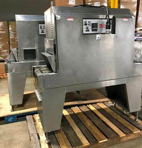 SHANKLIN PP180844EU Overwrap. Like new Preferred Pack Stainless Steel Shrink Tunnel, 18″x 8″x 44″ chamber size, 9Kw heater bank, 1 hp blower motor, digital temp. control, stainless steel construction, 0-75 FPM variable speed conveyor belt, 220V/3PH/60HZ.