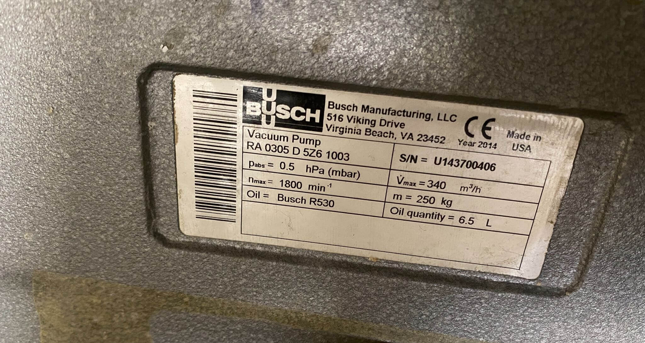 XtraVac Single Chamber. 33″ X 27″ X 9″ Chamber. Built in Busch 100...