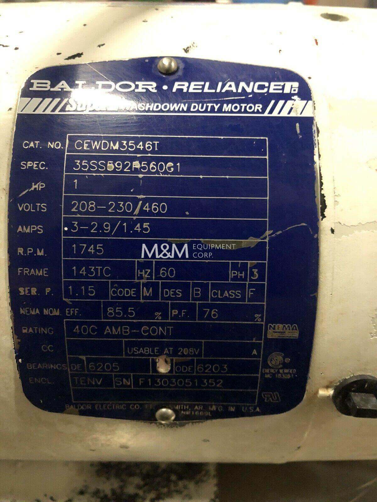SPX Positive Displacement Pump. 2″ Input and discharge sanitary clamp connections. 1 hp Baldor motor, 1725 RPM. 208-230-460V/3PH/60Z. Mounted on stainless steel base frame.