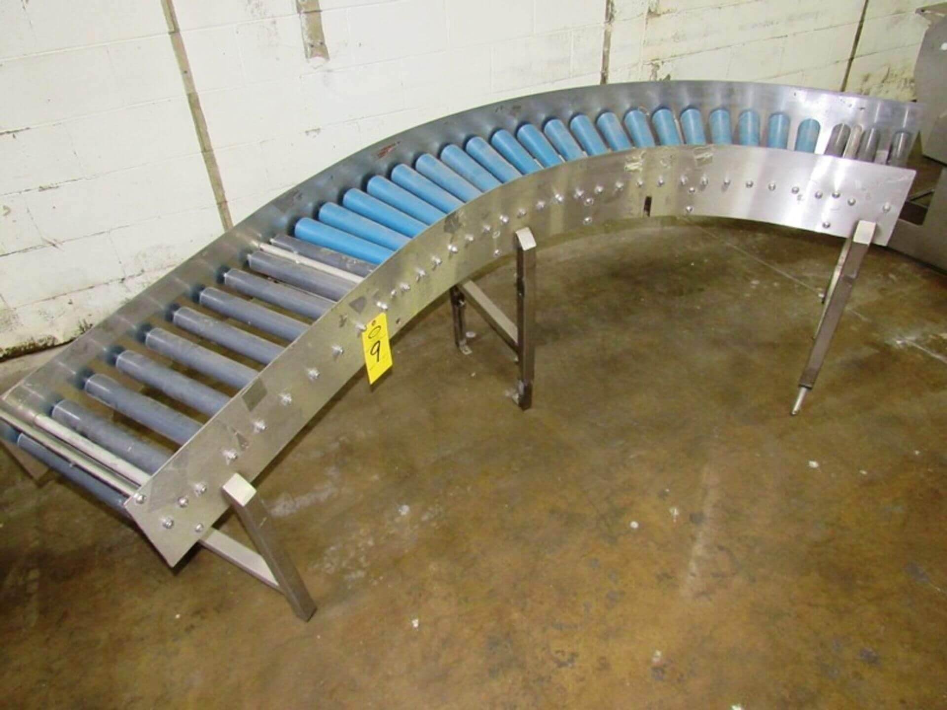 CUSTOM STAINLESS 90 Degree Turn Conveyor. 48″ straight section, 90 Degree cent...