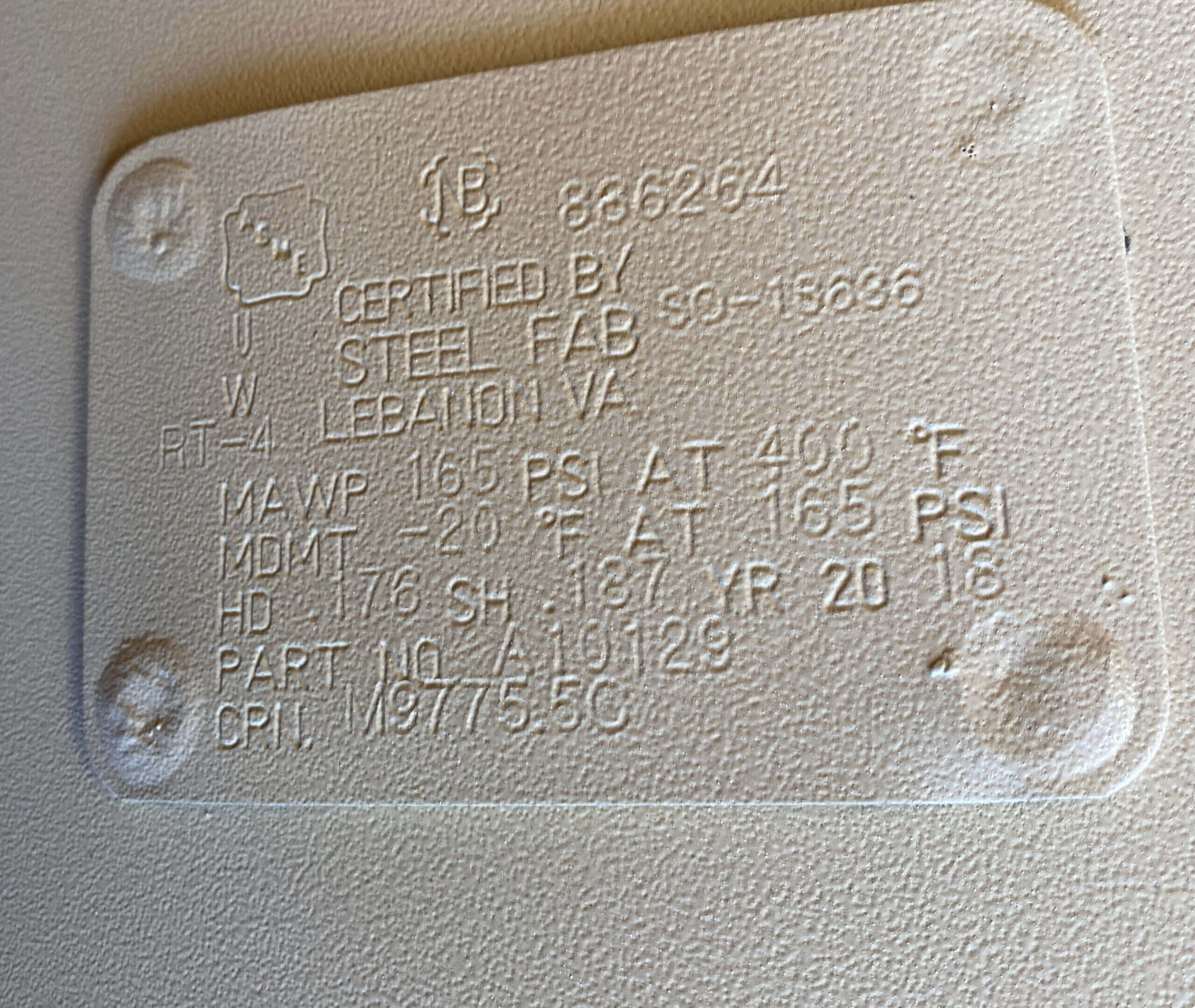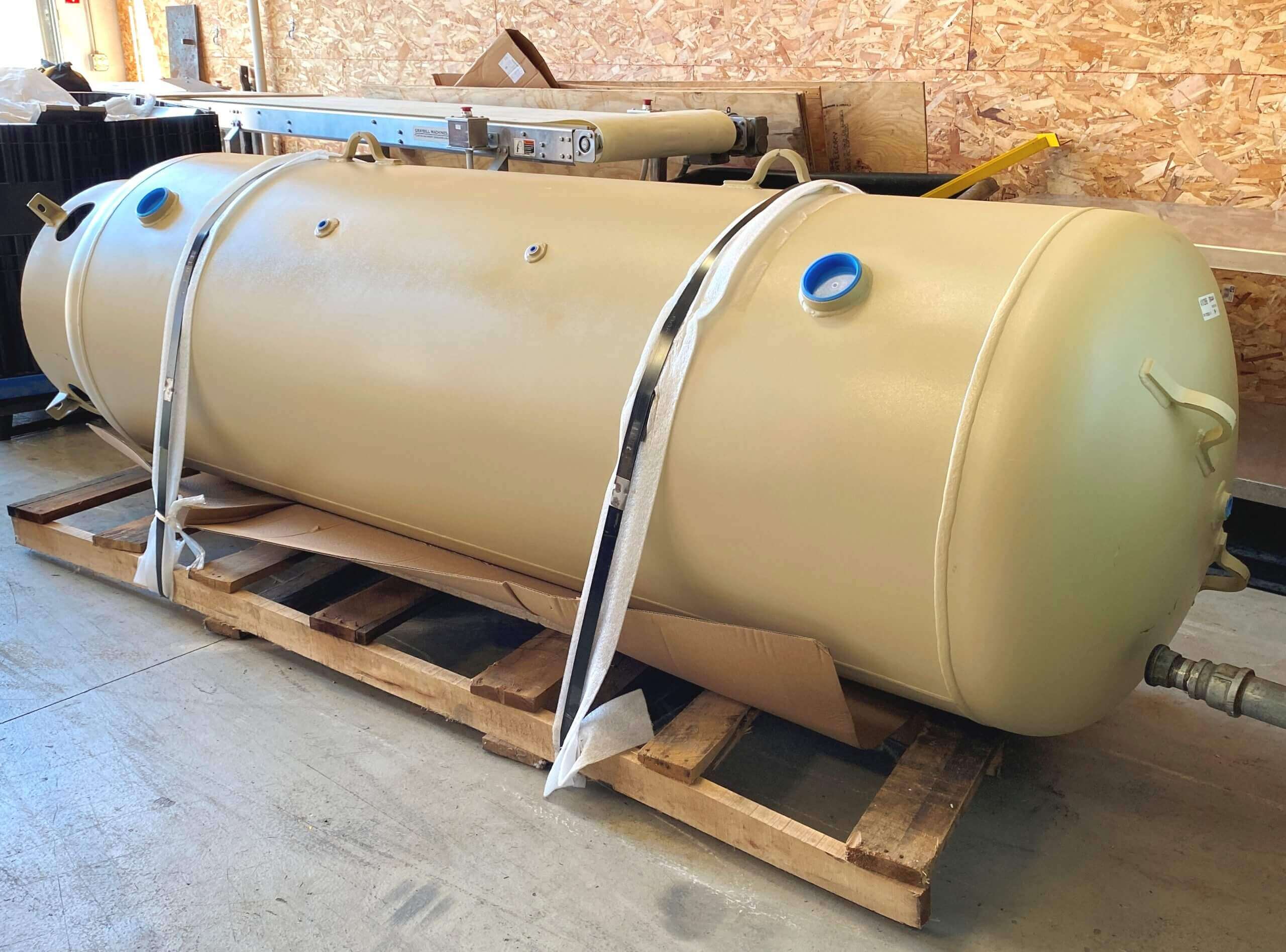 New, never installed. Vertical receiver surge tank. 500 gallon capacity. Tank OD dimensions: 11′ tall x 36″ diameter. Rated to 165 PSI @ 400 F. 3/4″, 1″, 2″ and 3″ NPT connections.