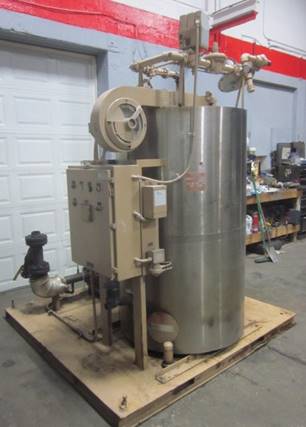 STEIN THF3413 Fryer. Recently refurbished. 34″ wide conveyor belt X 13′ in oil. Includes new control panel and gear drive motors. Fulton Hot Oil Boiler, model FT-A1050, 1,052,000 BTU, natural gas-fired. 15hp circulation oil Pump & Filter, 24″ x 6′ horizontal holding tank. New overhead frame and hoist.