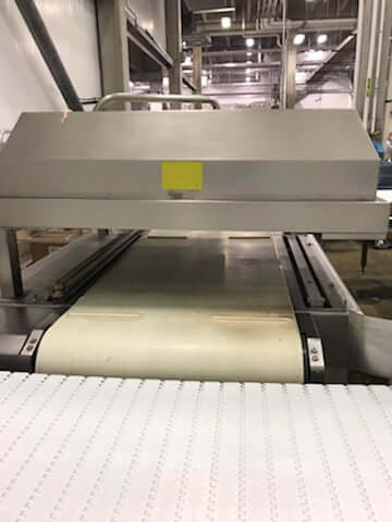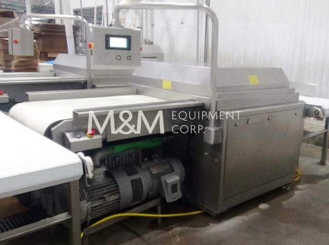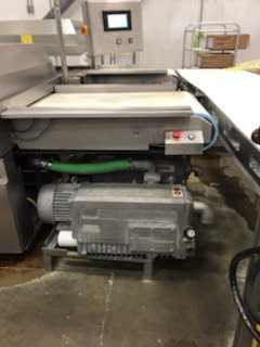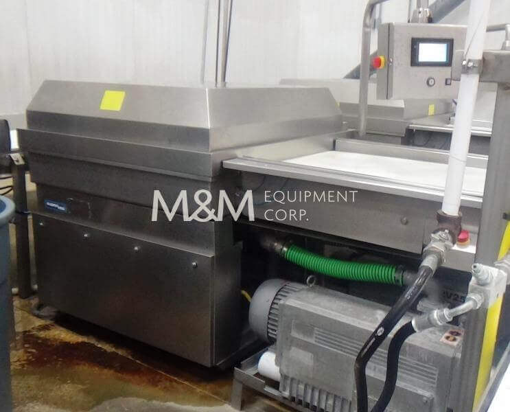 Automatic Vacuum packaging machine, Touch screen on control panel, 20 program memory, Busch Vacuum pump, 44″ x 43″ x 8″ Chamber, (2) 39″ seal bars, 31″ between seal bars, 29″ wide discharge conveyor, 480V/3PH/60HZ
