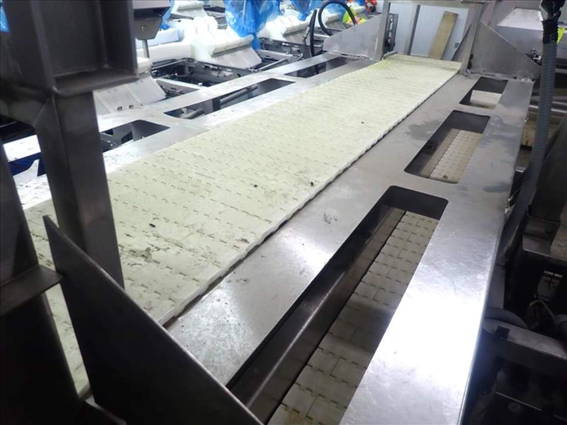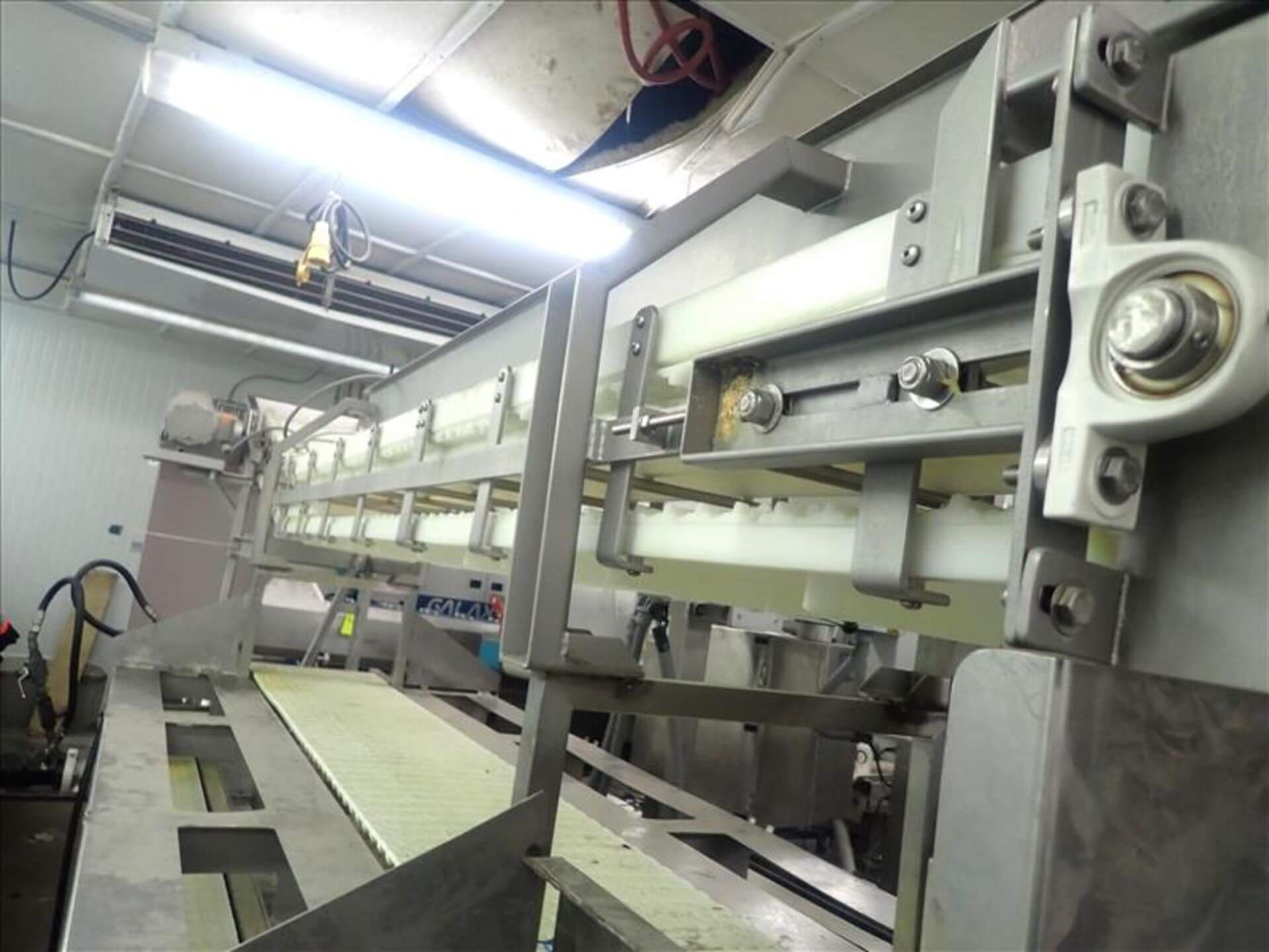 Kleenline Pack Off Conveyor. Twin conveyors: Top 12″ wide plastic conveyor bel...