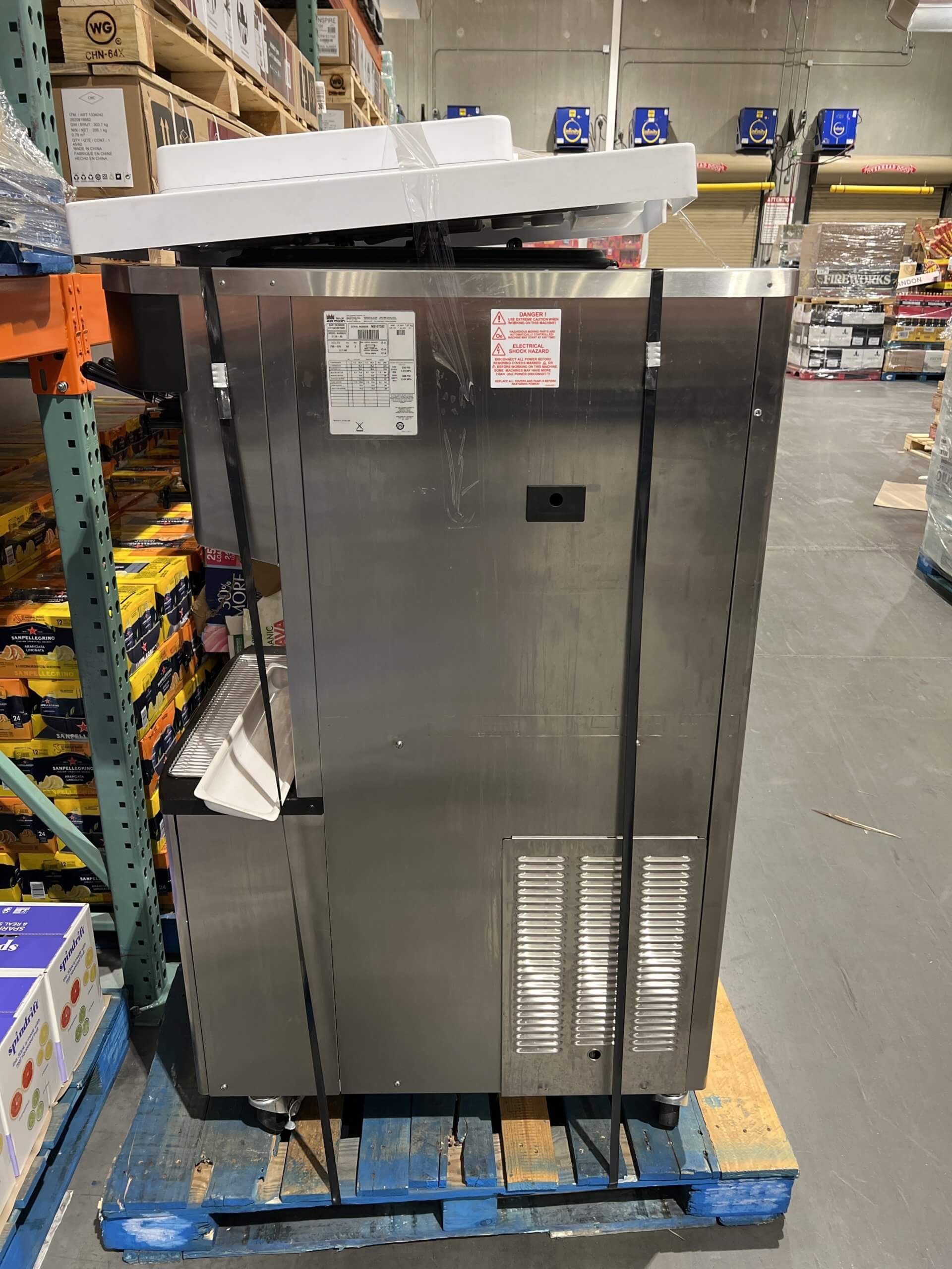 Taylor C716-33 Ice Cream Machine. (2) 3.4 QT hoppers with (2) freezing cylinders, air cooled, 2 flavor capacity + twist, built-in heat treat system that provides a daily heating and cooling cycle to safely maintain dairy products up to 28 days before a complete disassembly and cleaning, touch screen microprocessor controls, (2) 1.5 HP beater motors, 208/230V/3PH/60HZ.