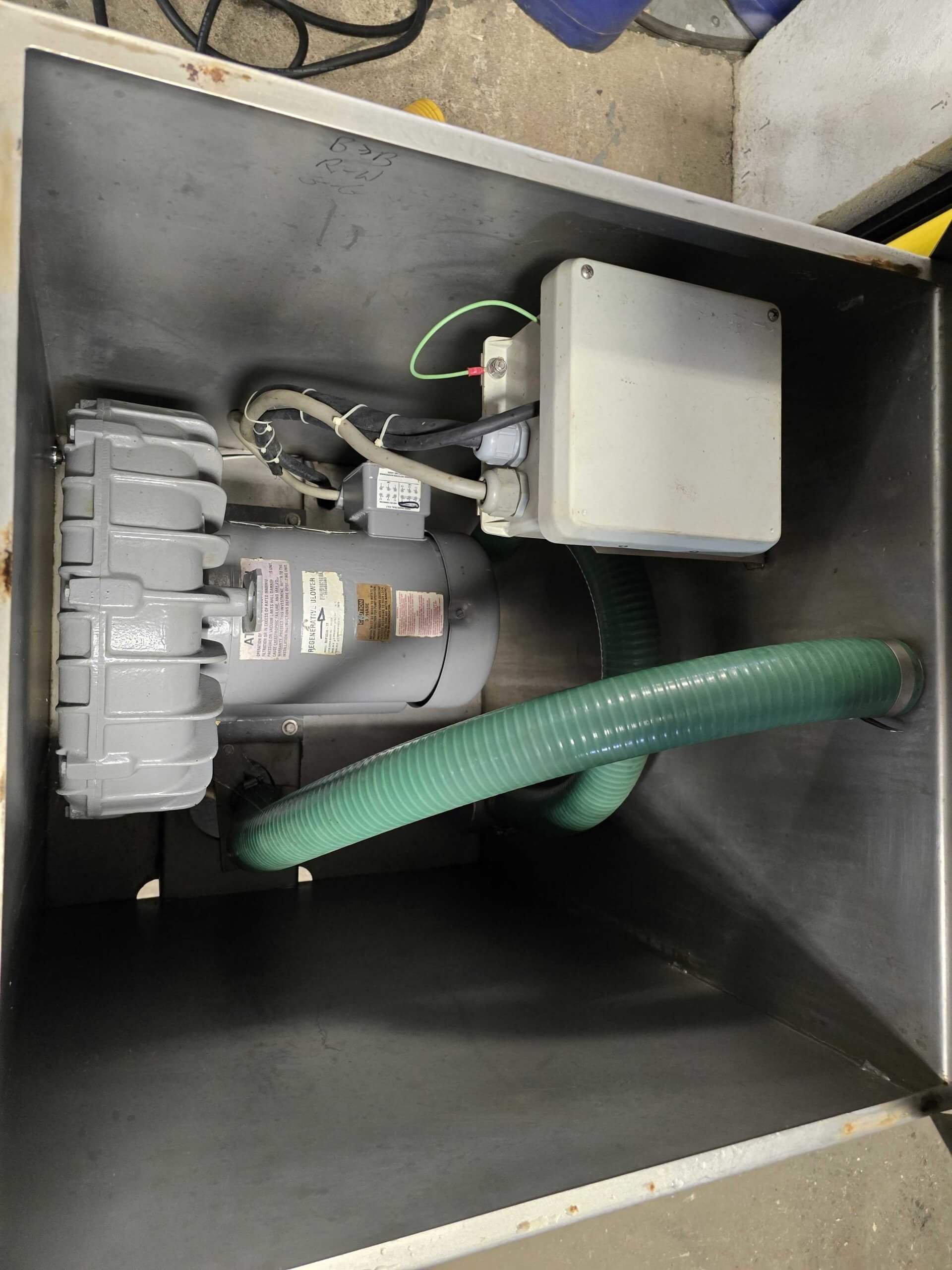 Townsend 2600 Sausage Peeler. Stainless steel construction, product dimension capacity 13mm to 36mm diameter casings, 25 psi steam pressure, 75-100 psi air pressure, with collection vacuum system, 220V/3PH/60HZ, 6.94/3.47 Amps.