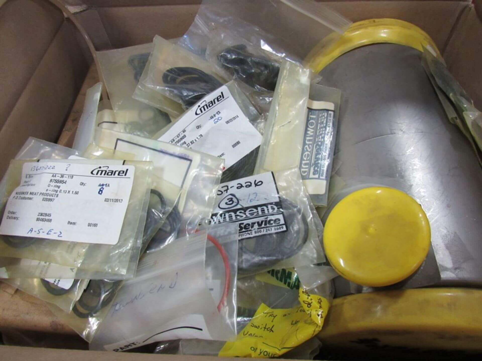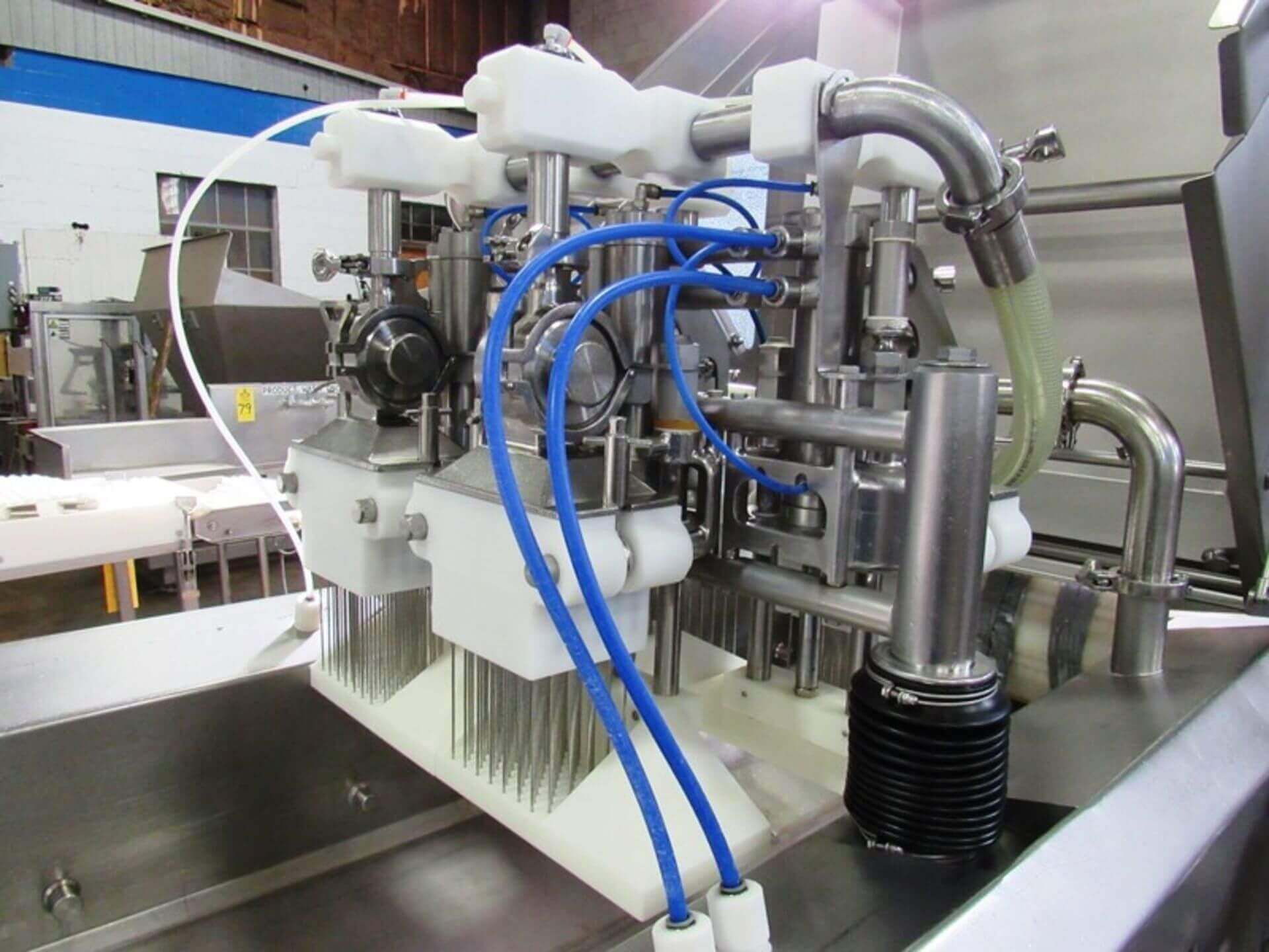 TOWNSEND 8000 Pickle Injector. Townsend Mdl. 8000 Auto-Injector, 230 volts, 3 phase, double head, 140 needles per head, built-in brine tank with rotofilters, 20″ wide X 7′ long conveyor belt, stainless steel parts cart, with spare parts electronics, hoses, needle blocks, conveyor parts, belting manifold