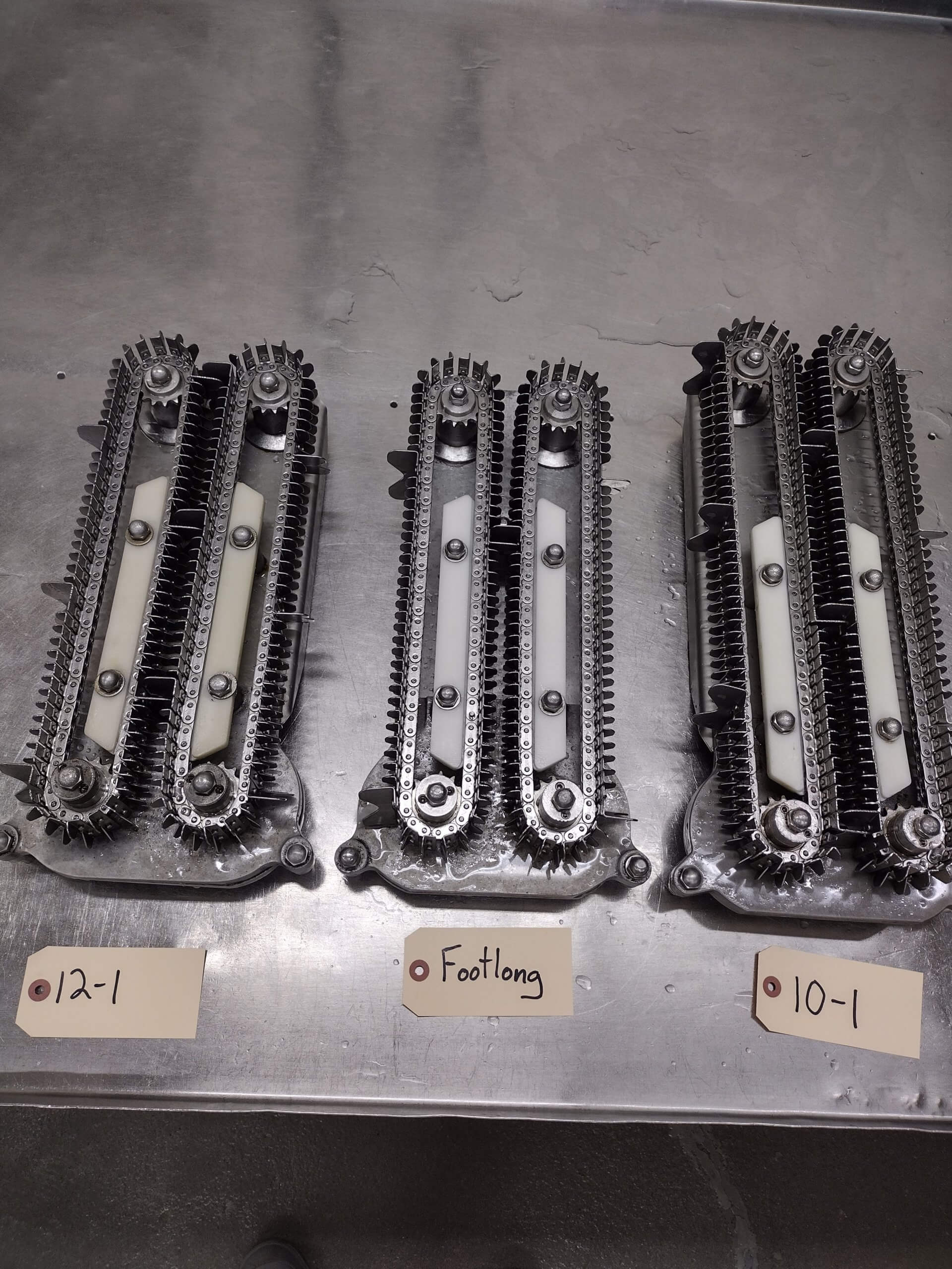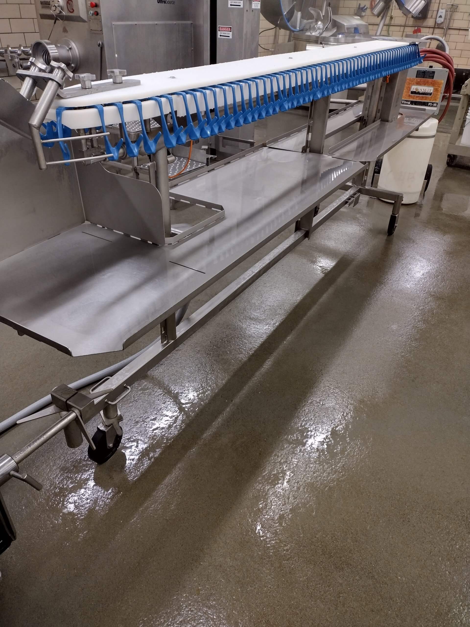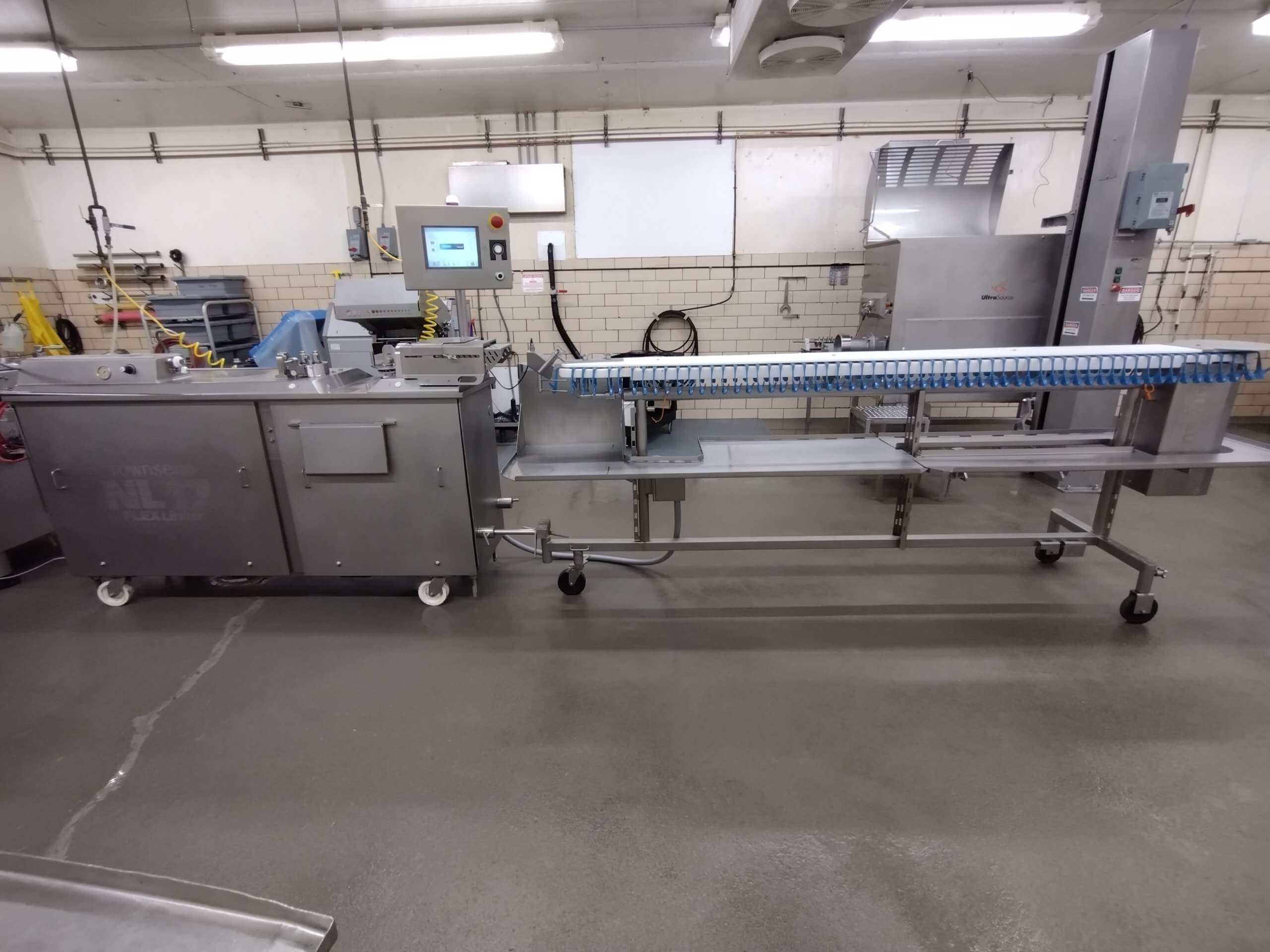 TOWNSEND NL-17 Flex A-B Linker with Horizontal 10′ Conveyor. All stainless steel construction, Fills and links cellulose and collagen casing up to 17″ in length, diameter range 14.5mm to 34mm, links up to 6,000# per hour, 480V/3PH/60HZ. Requires 75 psi air, 40-60 water psi.