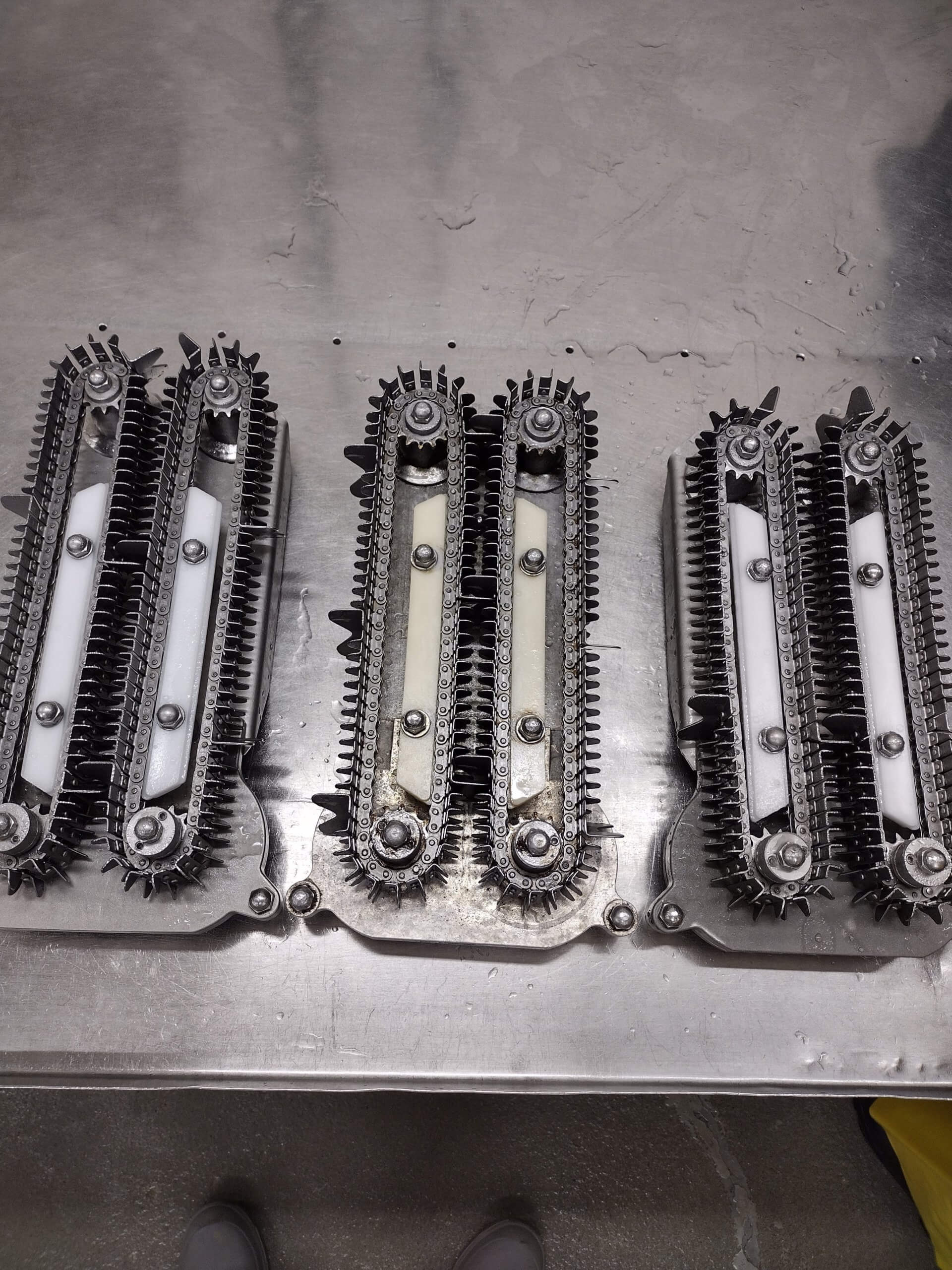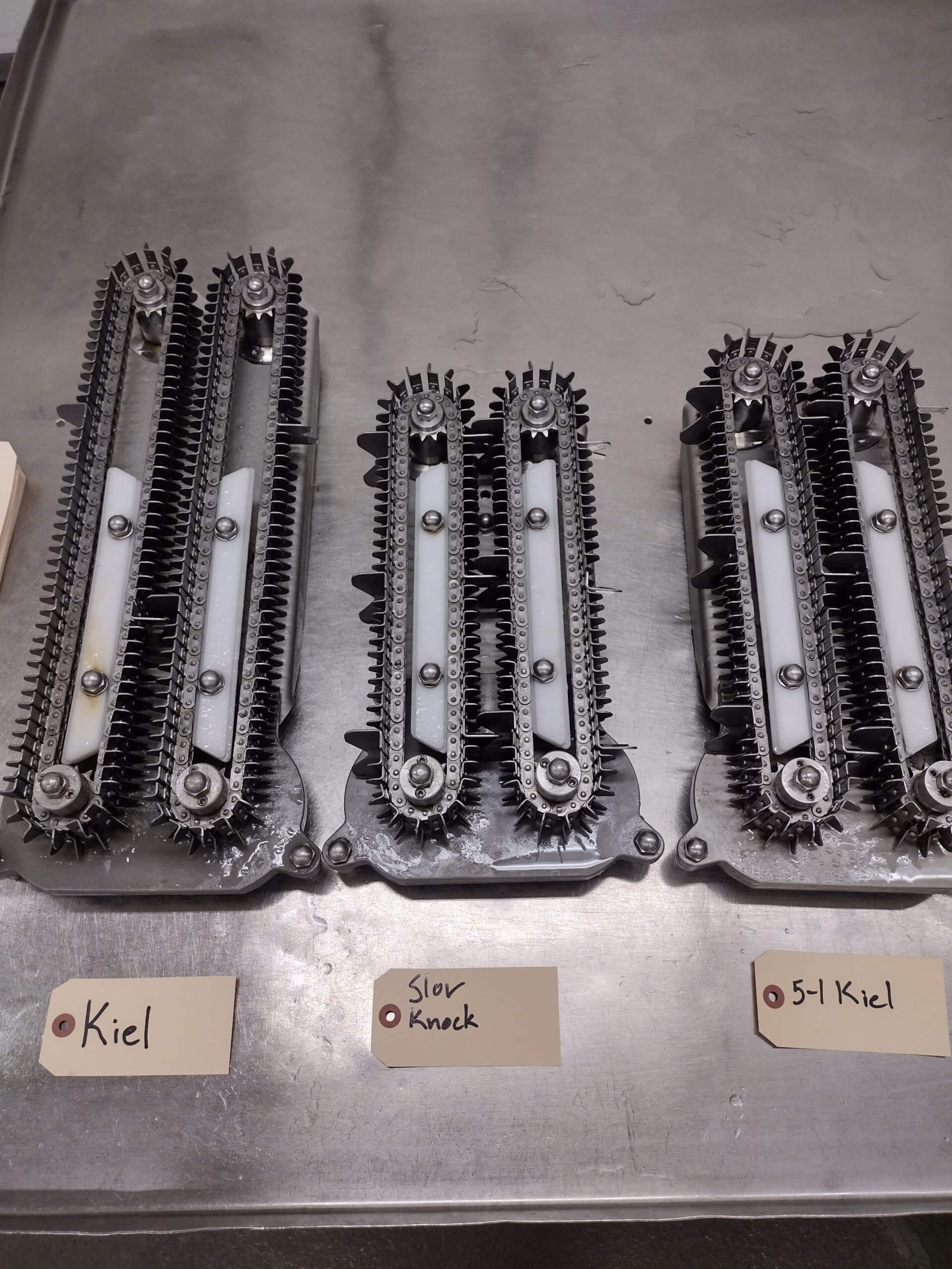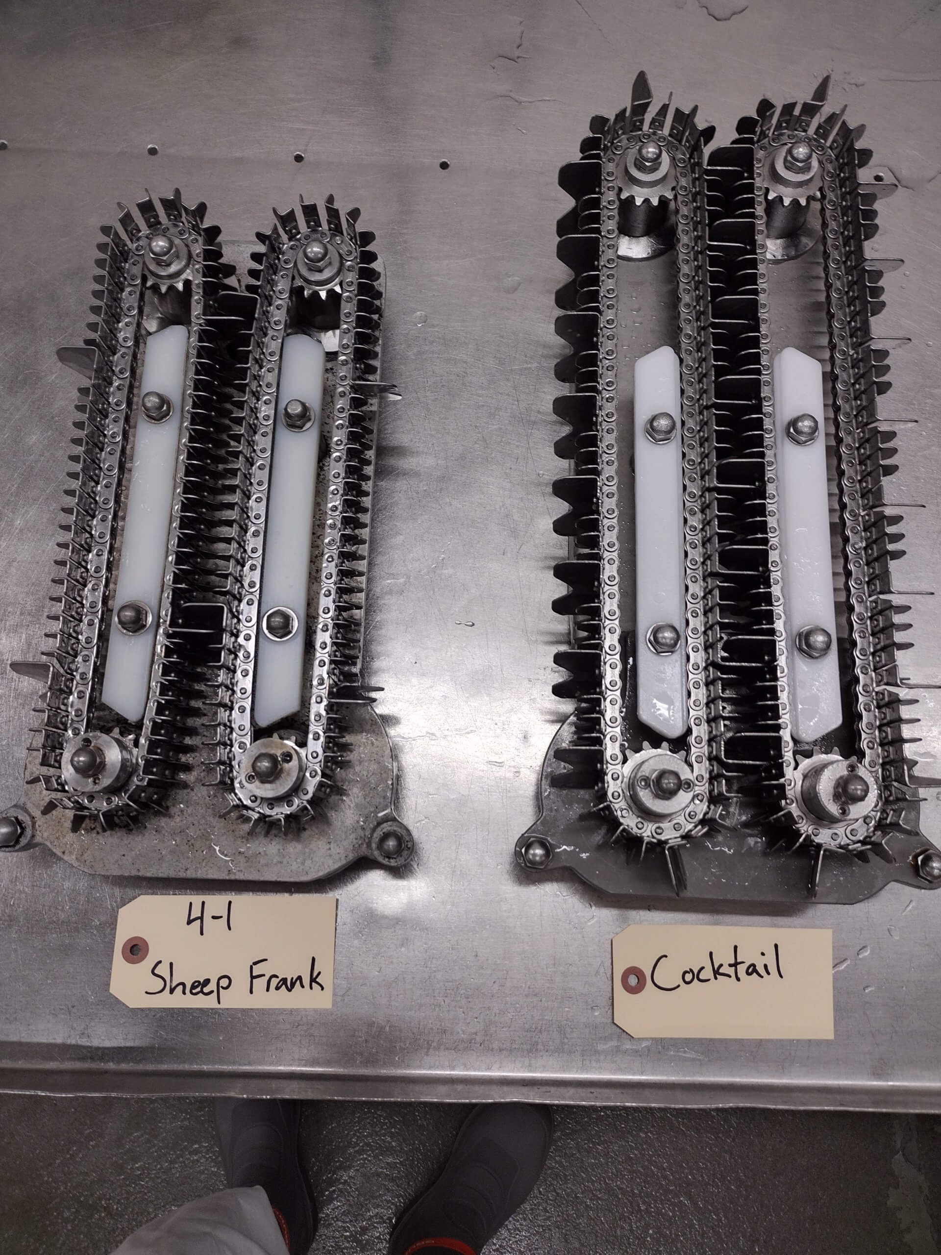 TOWNSEND NL-17 Flex A-B Linker with Horizontal 10′ Conveyor. All stainless steel construction, Fills and links cellulose and collagen casing up to 17″ in length, diameter range 14.5mm to 34mm, links up to 6,000# per hour, 480V/3PH/60HZ. Requires 75 psi air, 40-60 water psi.