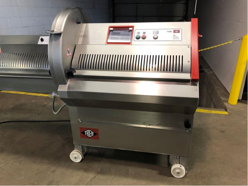 TREIF Zebra CE Slicer. Setup for 1/8″ slice thickness, minimum product temp. 2...