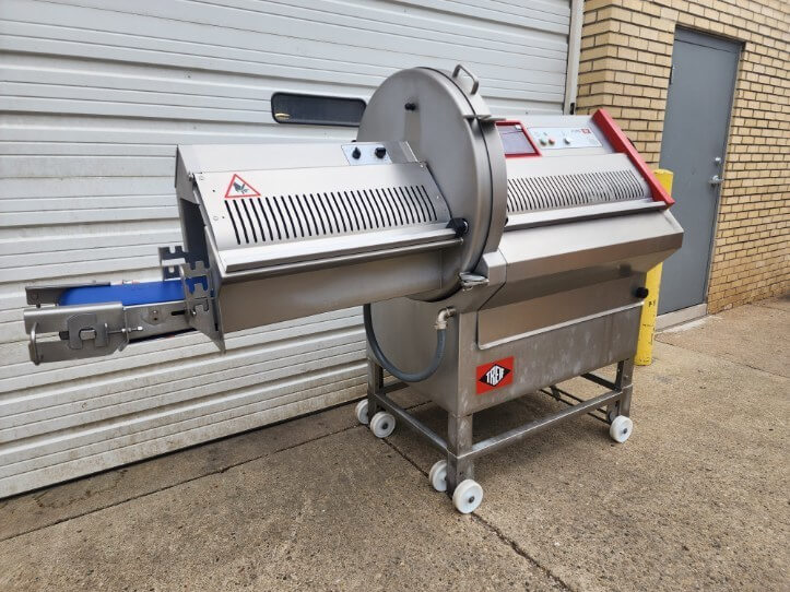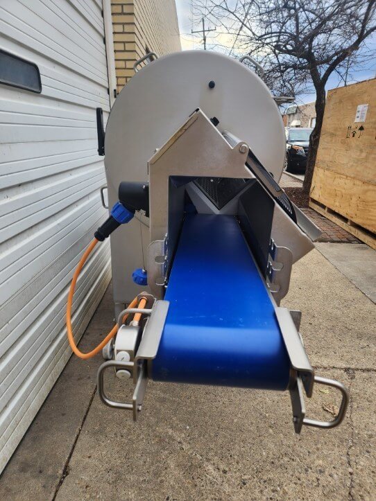 TREIF Zebra CE Slicer. Setup for 1/8″ slice thickness, minimum product temp. 2...