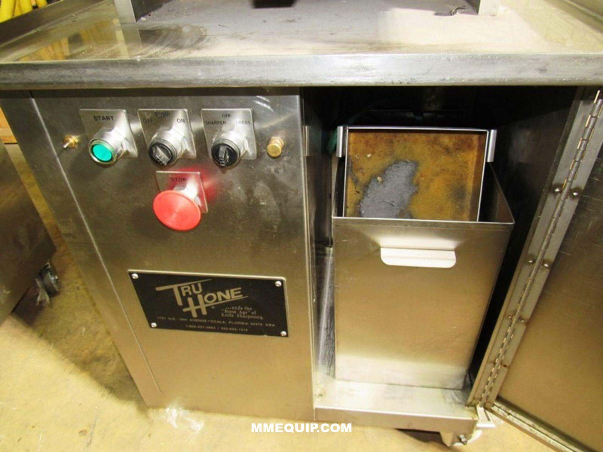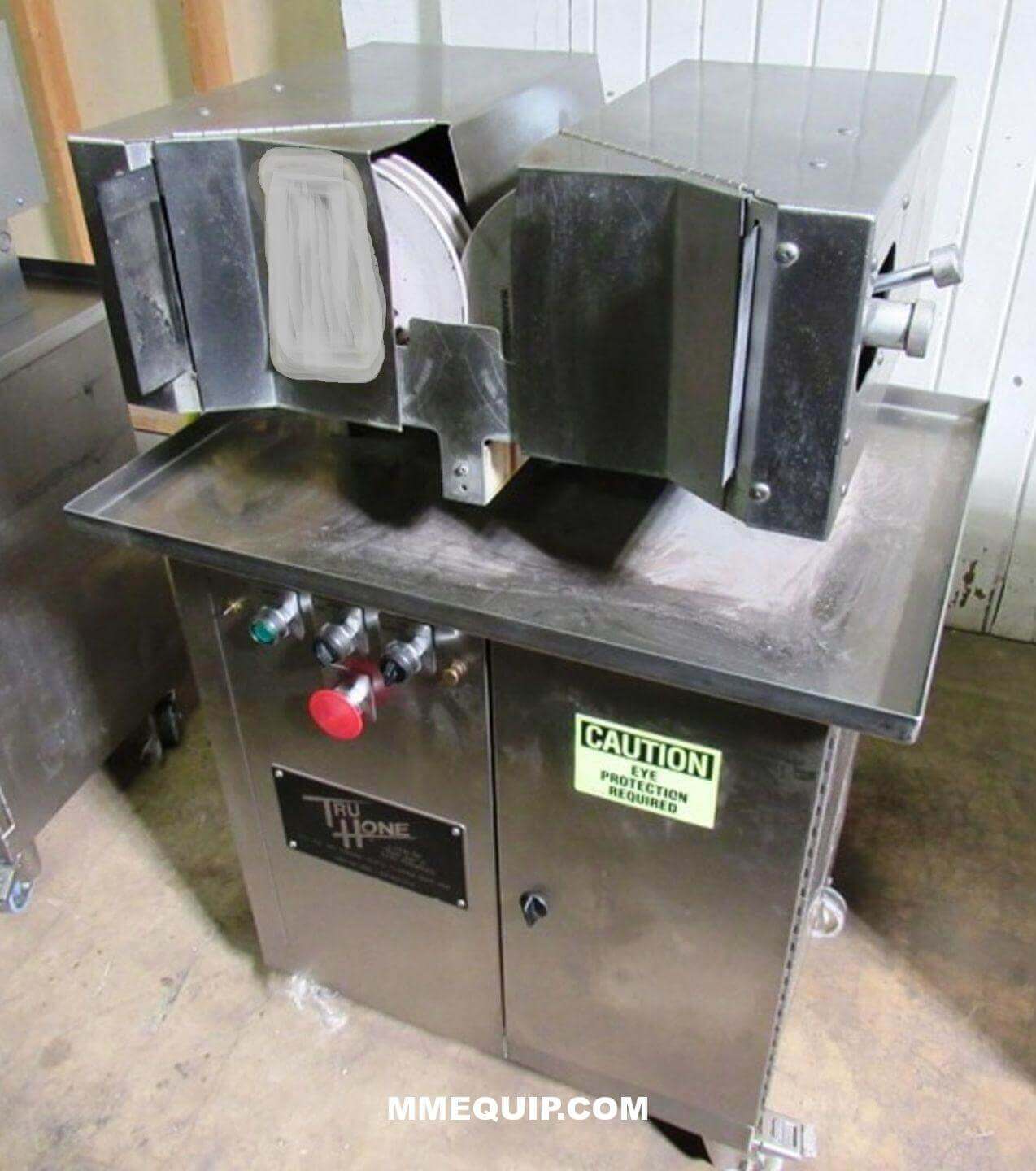 TRU HONE HR8 Hollow Grinder. Tru Hone HR8 Honer is designed for an operation with a large volume of knives using two pairs of contra-rotating 8.5″honing wheels mounted on parallel motor shafts to simultaneously sharpen both bevels of a knife-edge. Two semi-automatic dressers maintain the smoothness of the honing wheels with self-contained coolant system. (2) 3/4hp motors, 1140 RPM, 220V/3PH/60HZ, 8 Amps. Requires 85 PSI compressed air.