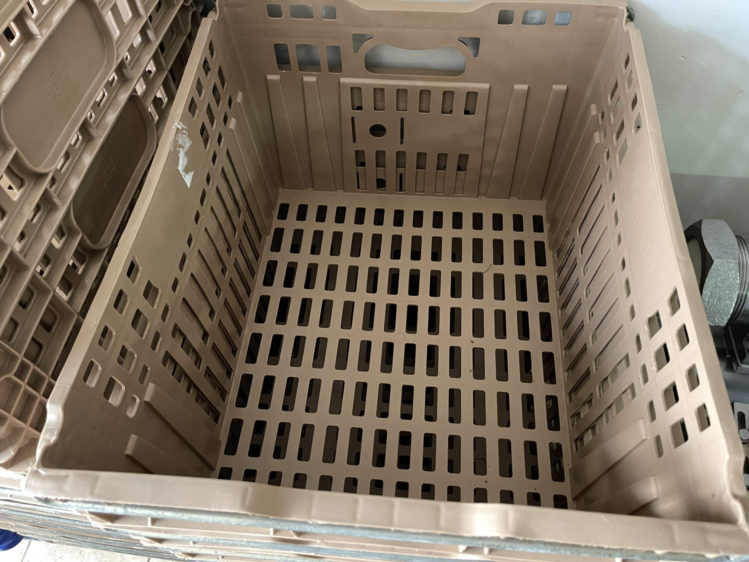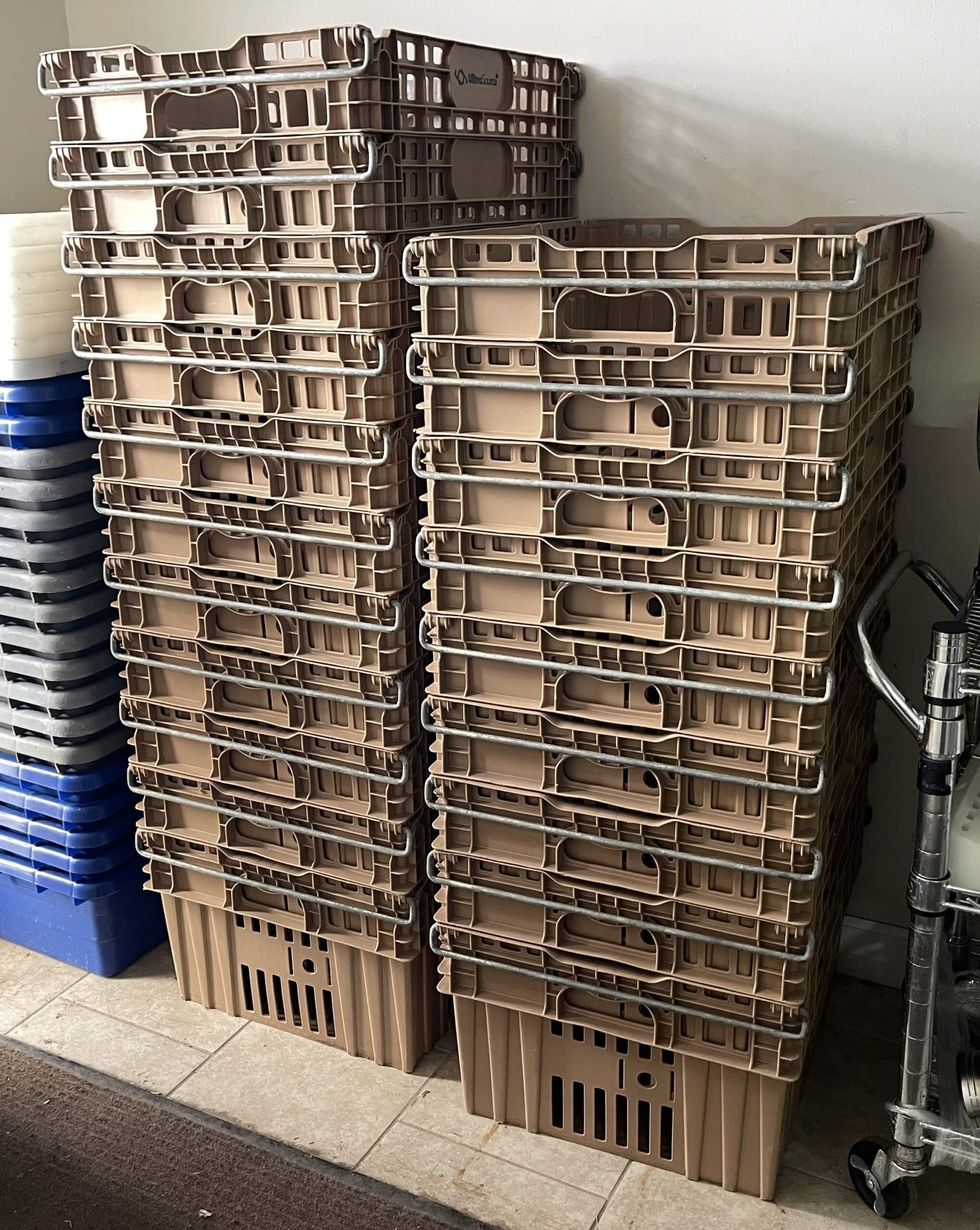 ULTRASOURCE Chill Trays. (20) Chill Trays, 24″ x 20″ footprint stacks securely with bail arm engaged, efficiently nests when bail arm is open, Ventilated design for product temperature control, and minimized cooling time, ID: 18-3/4″ x 22″ x 13″, 75 lbs capacity.