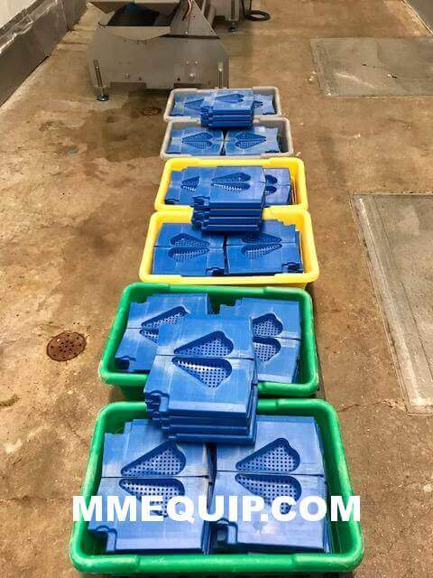 Marel TSM Profiler. Portions fresh poultry fillets or butterflies into specific portion size and weight. Stainless steel construction. Includes 4 sets of TSM plates. Requires 2 to 3 gallons of water per minute & Compressed air. 220V/3PH/60HZ. Includes Manuals and spare parts.