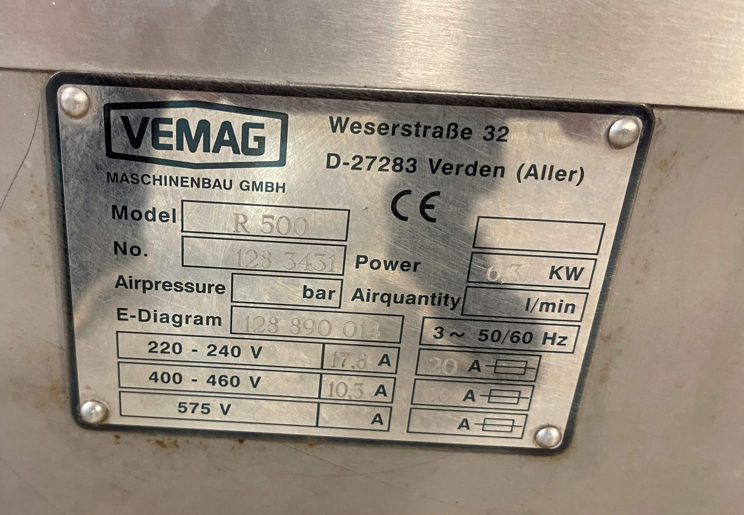 Vemag 500 w. PC 878 control panel, SN 128-4588...