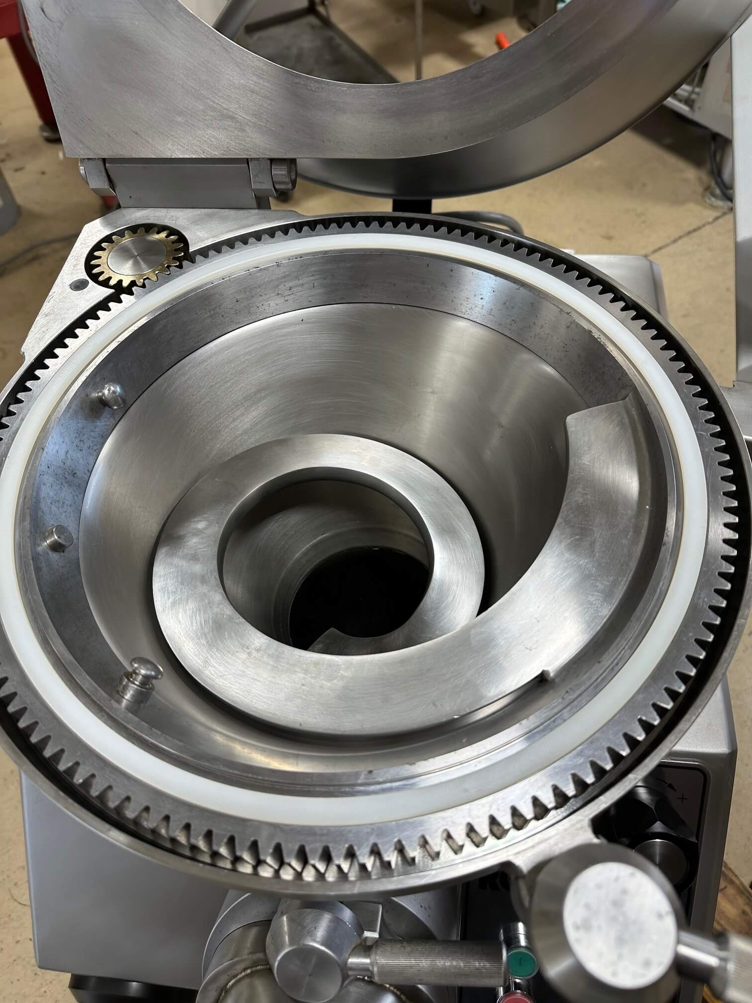 VEMAG 500 Vacuum Stuffer READY TO SHIP!! PC 878 Digital control panel, 200Lb. hopper. 4″ horn holder, rear radiator, 120mm throat (large diameter), Fill rate up to 2,500 kg/hour, portion speed up to 450 portions/minute. 220V/3ph/60Hz. 17 Amps.