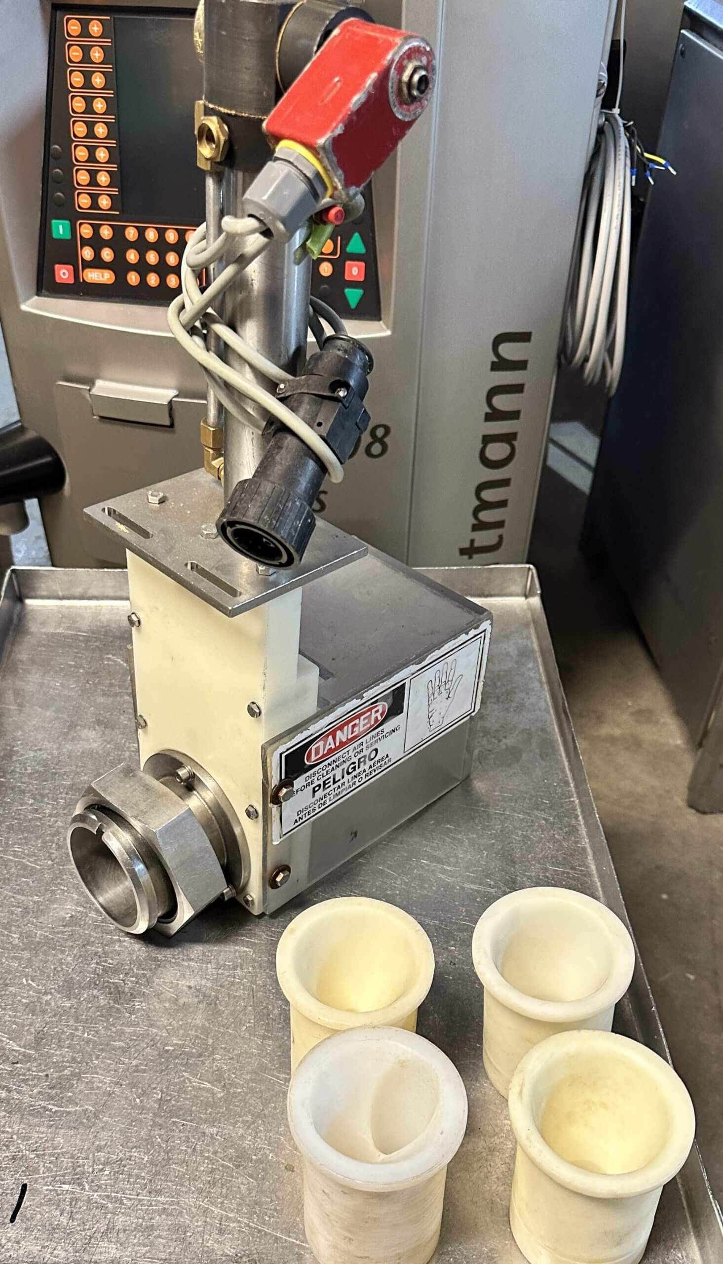 VEMAG Guillotine Cutoff Nozzle. Operates with a Vacuum Stuffer equipped with portion...