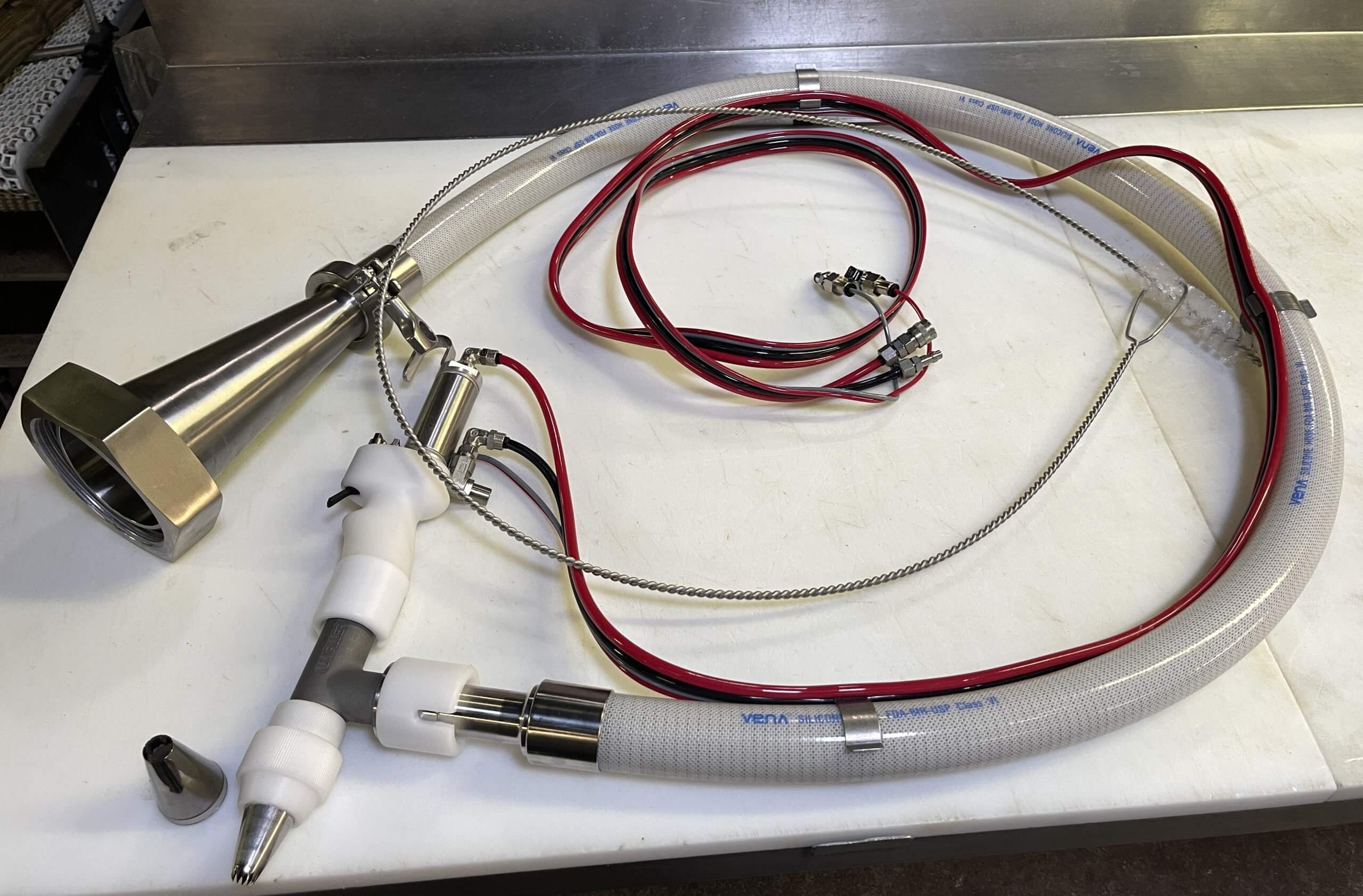 VEMAG DRIPLESS VALVE. Hand Held Dripless Fill Spout. Operates with a Vacuum Stuffer equipped with portion control. 2″ extruding outlet with 36″ long hose. Stainless steel design, 25 psi @ 60cfm, operates with Vacuum Stuffer with 24 volt plug-in system. Includes SBJ-324 control panel mounted in a stainless steel enclosure.