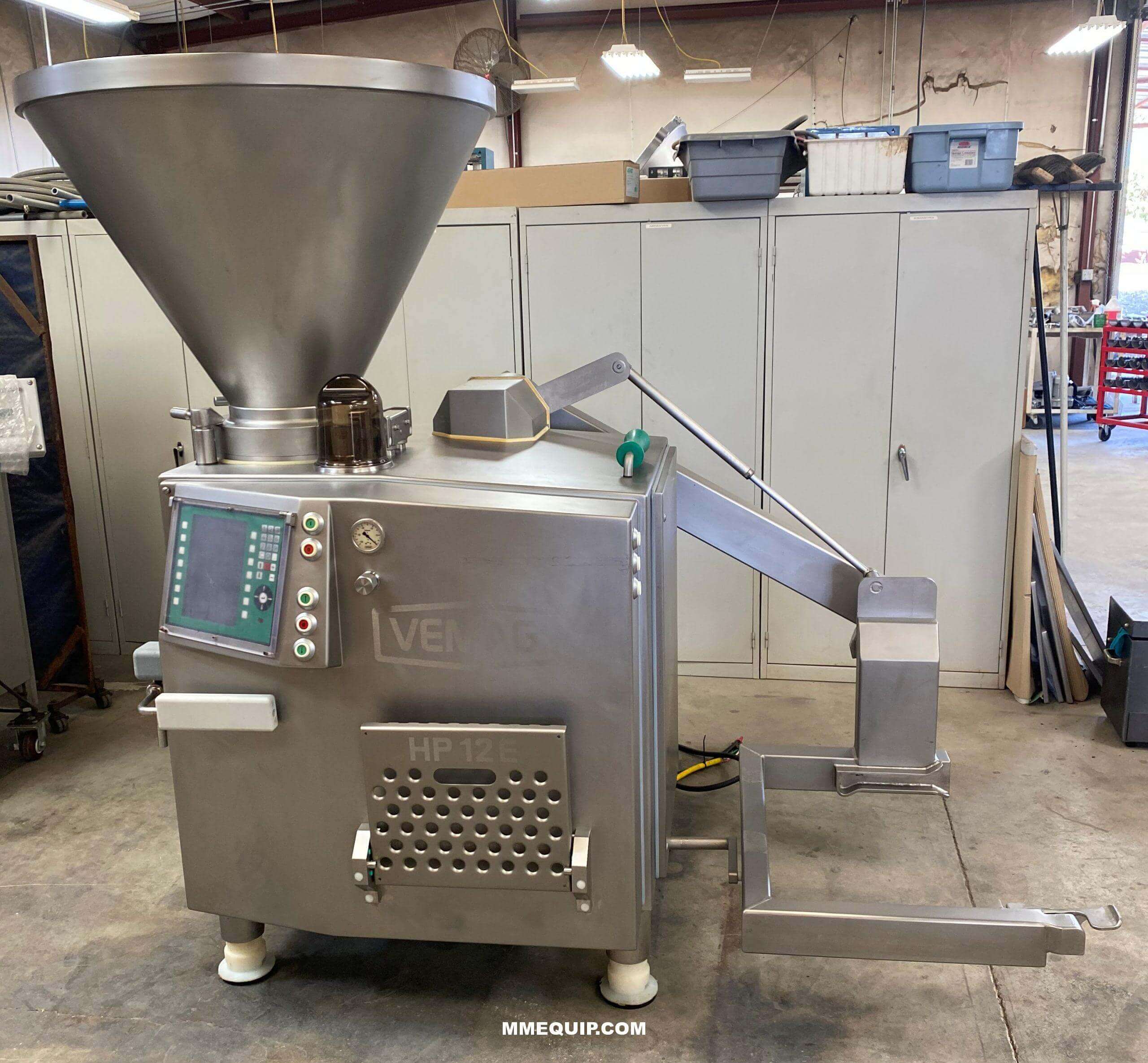 VEMAG HP12E Vacuum Stuffer. Fill rate up to 3600 kg per hour. Portion weights of 5g up to 99,999 g. Equipped with servo technology for portion accuracy. Includes a built-in loader. 220V/3PH/60HZ.