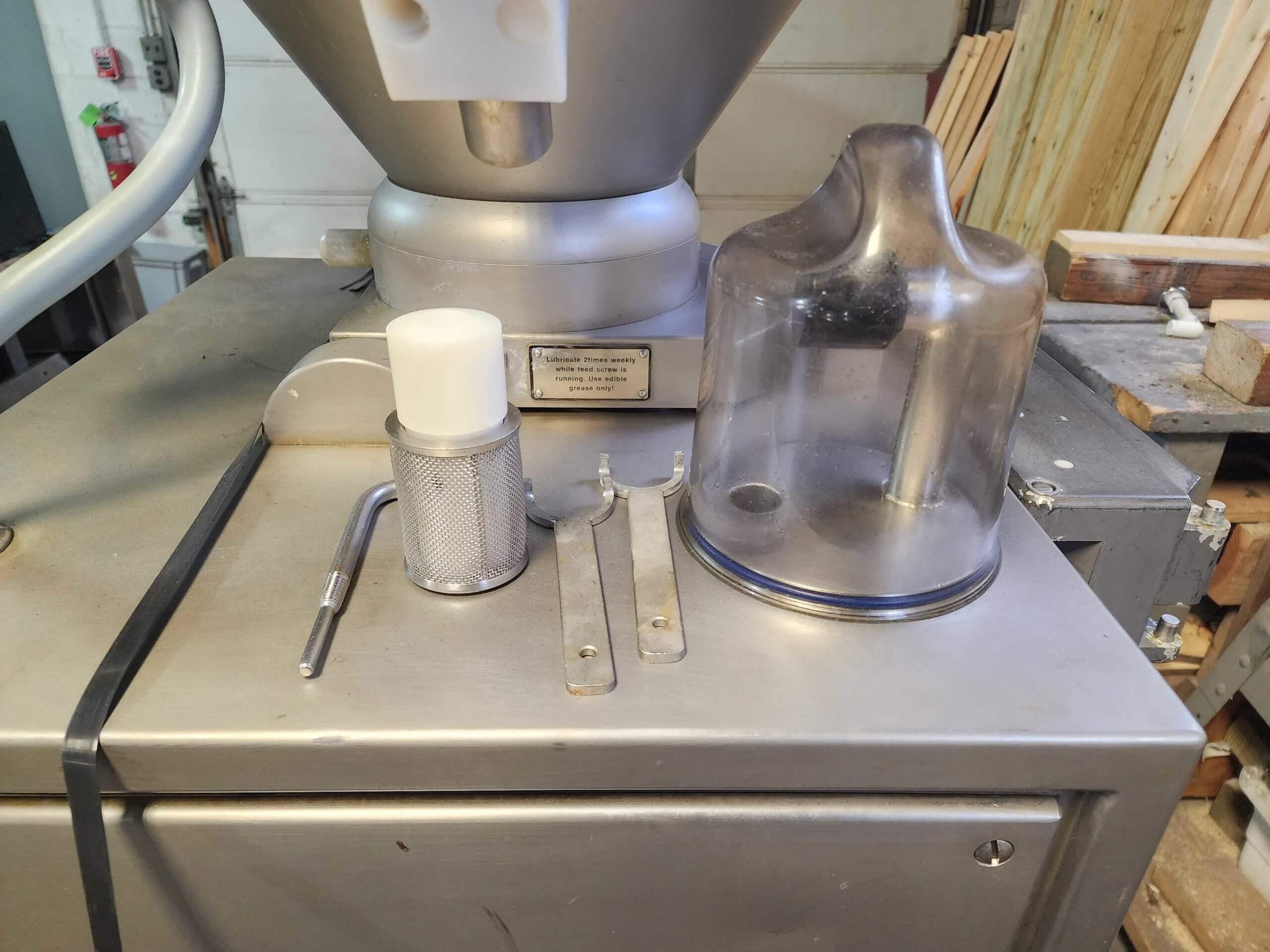 Frey C-120 Vacuum Stuffer. Includes Twist linker. Includes twist and straight stuffi...
