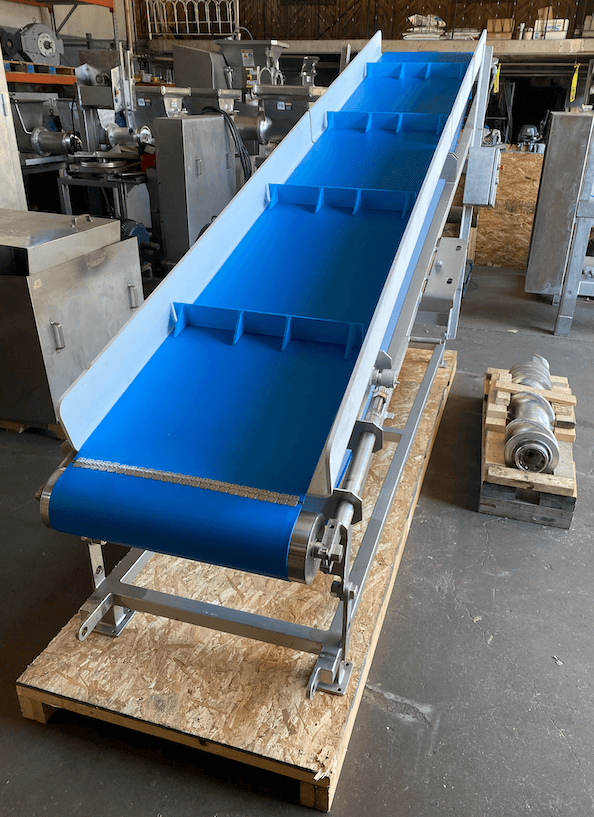 Incline Conveyor, 16″ wide X 12′ Long cleated belt, stainless steel cons...