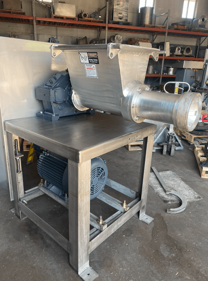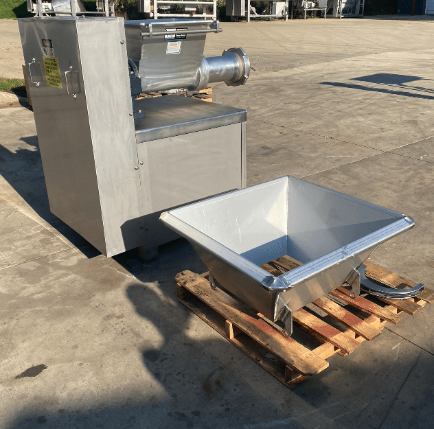 Reconditioned WEILER 868 Grinder. 40 Horsepower TEFC motor, stainless steel frame construction, Tinned new feed screw, New Hopper, New spiral fluted barrel, open end ring, Rebuilt 1780-6H Gearbox with new Main shaft and wear collar, Stainless steel hopper extension, eng ring wrench, T-Handle Tool, Standard 5/32″ Hole plate and knife spring, pin, and bushing. The machine comes with new stainless steel covers (not pictured). Machine skidding and crating optional, 230V/3Ph/60Hz.