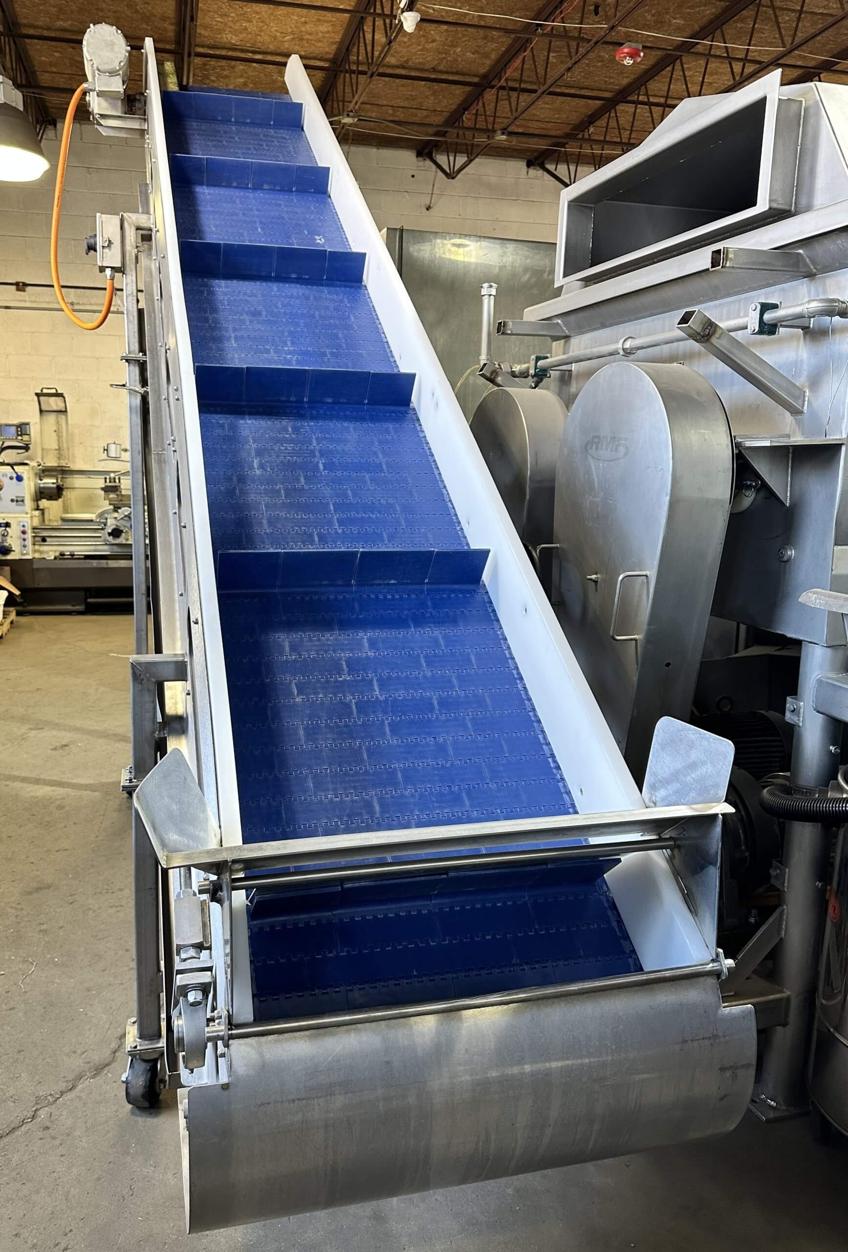 LYCO Bluebelt Incline Conveyor. 14.5″ wide cleated conveyor belt, cleats space...