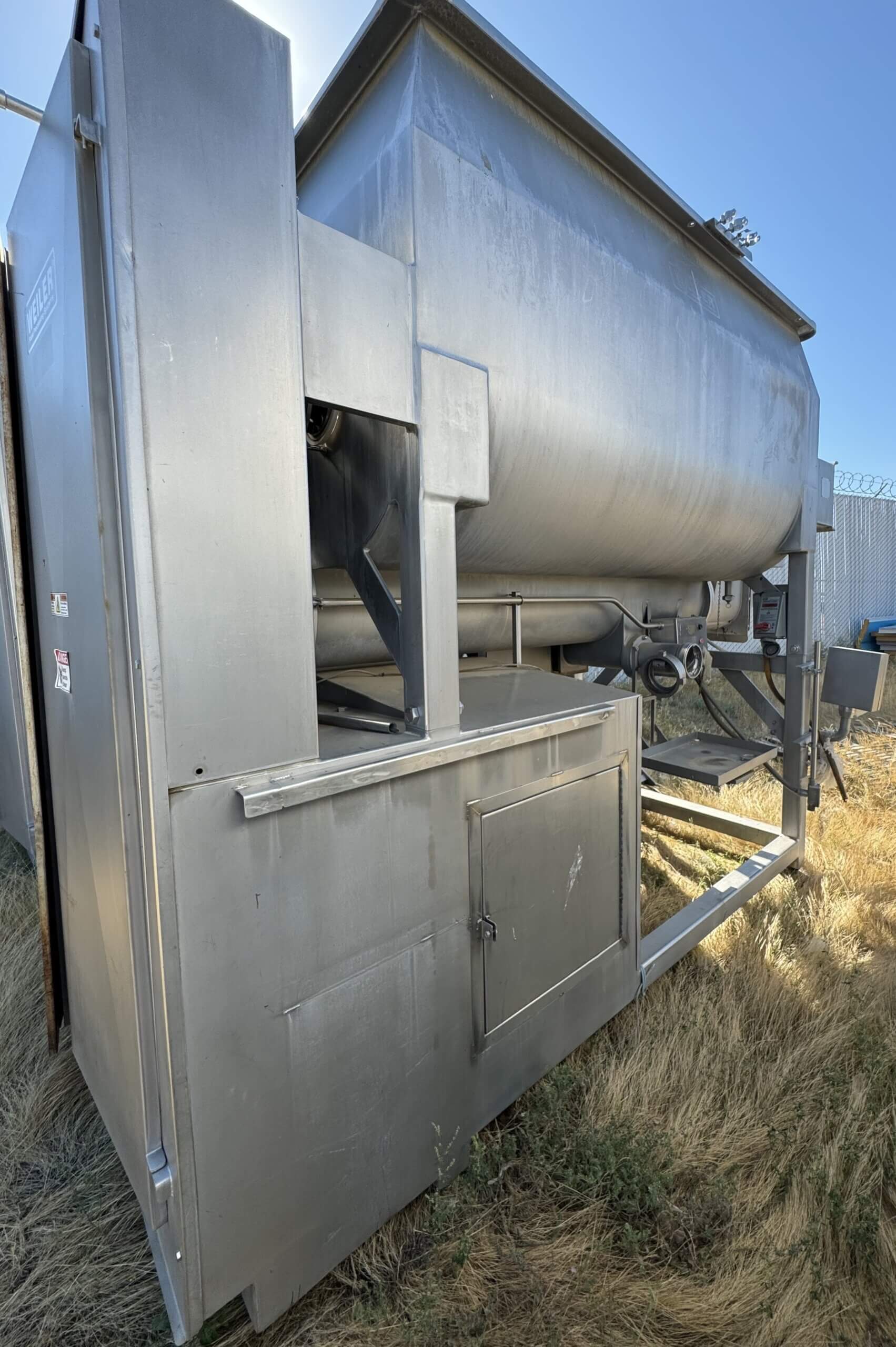 Stainless Steel 10,000lb Ribbon Blender. 128” x 69” x 44” deep. Pneumatic duel...