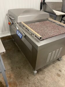 Supervac GK 169B Automatic Vacuum Chamber Machine. 24.5″ wide conveyor belt, 3...