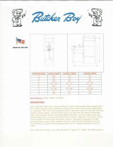 Butcher Boy AU56/AU56F/AU66S Meat Grinders Brochure