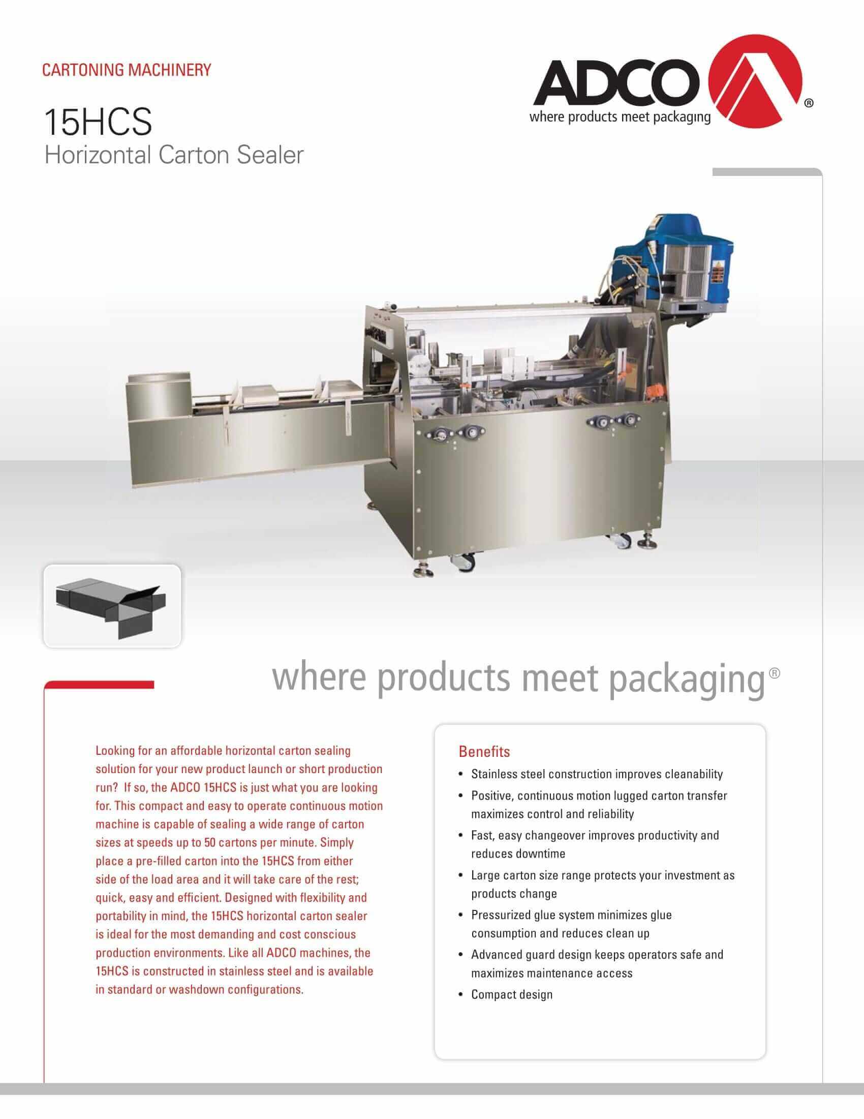 M&M Equipment Corp > Resources List > Adco 15HCS Horizontal Carton Sealer Brochure