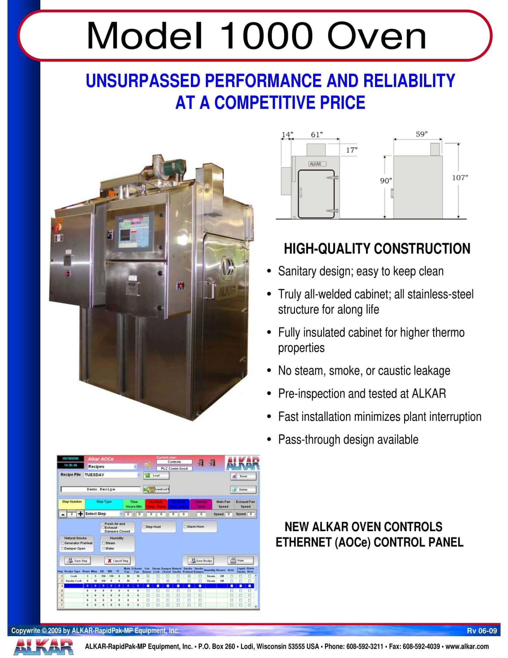 M&M Equipment Corp > Resources List > Alkar 1000 Oven Brochure